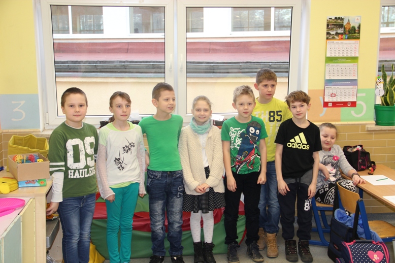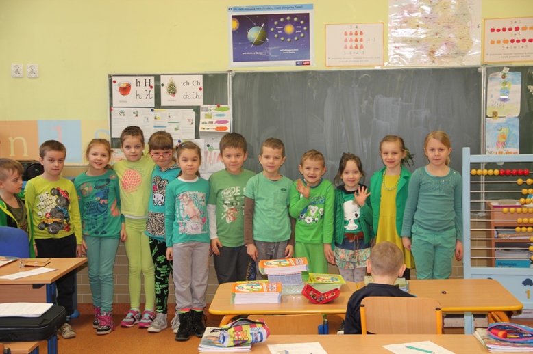 Z tej okazji wszyscy uczniowie przebrali się na zielono. Zieleń to narodowy kolor Irlandii, nawiązujący do trawiastego krajobrazu wyspy i symbolizujący koniczynę przypisywaną tradycyjnie świętemu Patrykowi.