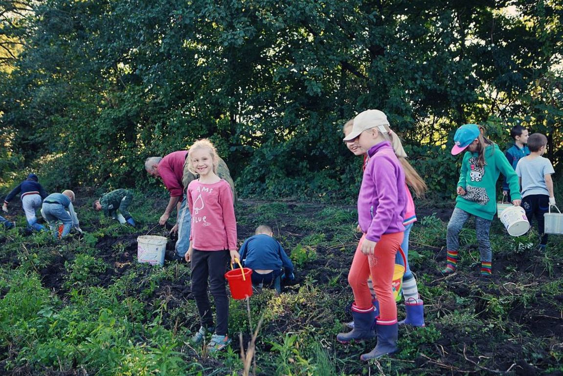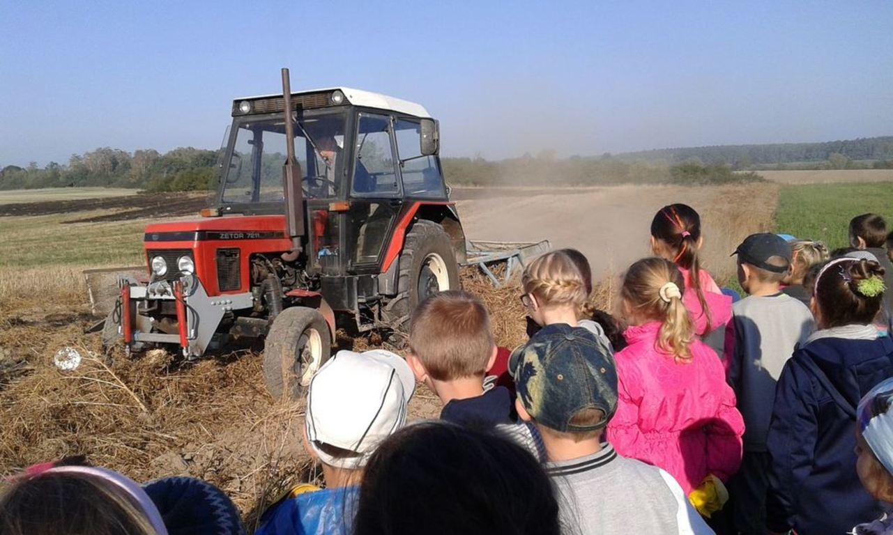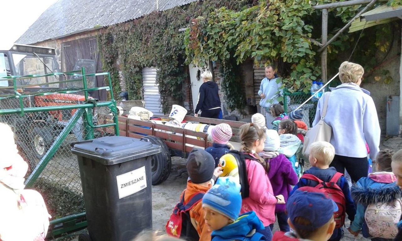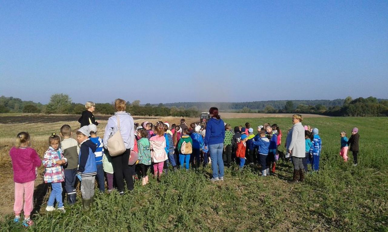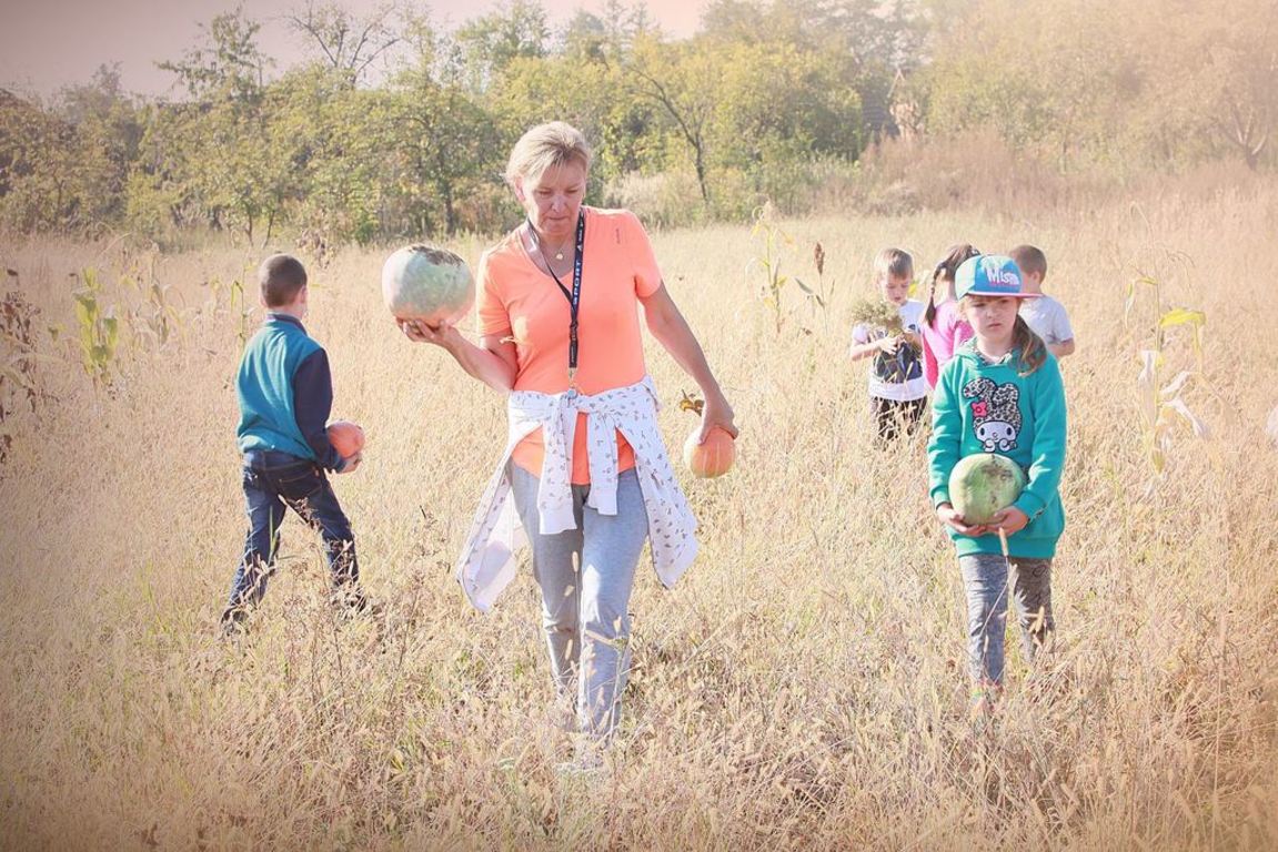 27 września 2016 roku dzieci z klasy II b i II c Szkoły Podstawowej wraz z wychowawczyniami zostały zaproszone na wykopki do Radachowa. Na polu czekali już rodzice i gospodarz ziemniaczanego pola pan Pułjan. Pogoda była piękna, toteż wszyscy dziarsko wzięli się do pracy. Dzieci zbierały ziemniaki do wiaderek, a panie wysypywały ich zawartość na przyczepę. Ziemniaków było całe mnóstwo, ale dzieci wybierały najciekawsze okazy np.: w kształcie chmurki, serca, misia lub gruszki. Potem była przerwa na smaczne kiełbaski, no i oczywiście pieczone ziemniaki. Podczas degustacji pani opowiedziała o budowie ziemniaka oraz sposobie ich przechowywania w czasie zimy. Gospodarz też się włączył i opowiedział, jak to król Jan II Sobieski sprowadził ziemniaki do Polski. Po posiłku i w dobrych humorach dzieci przejechały na wozie z zaprzęgiem konnym na pole dyniowe. Jaka radość była, gdy wszyscy zobaczyli ogromne dynie. Okazało się wówczas, że dzieci mogły je kulać po polu. W mig wszyscy zabrali się do pracy i szybko powstała wielka pomarańczowa piramida dyniowa, na tle której zrobiono pamiątkowe zdjęcie. Była też mowa o przygotowaniu potraw z dyni oraz jak bardzo są zdrowe i pożywne. W drodze powrotnej dzieci zaprosił do swojego gospodarstwa dziadek Olka, który pokazał swoje gospodarstwo. Było tam mnóstwo ciekawych okazów kur, kaczek i kotków. Jednak najbardziej podobały się dzieciom białe gołębie. Oczywiście wszystkie zostały wypłoszone:) Była też nauka łuskania kukurydzy ciekawą maszynką, do której ustawiła się duża kolejka.