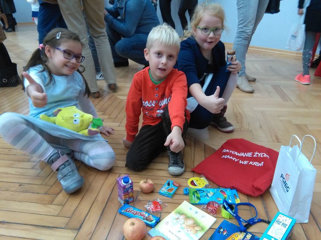 Wszyscy uczestnicy Wojewódzkiego Konkursu Plastycznego o tematyce Honorowego Krwiodawstwa PCK otrzymali nagrody i dyplomy (artykuły szkolne – farby, kredki, pędzle itp., oraz sprzęt sportowo - rekreacyjny).