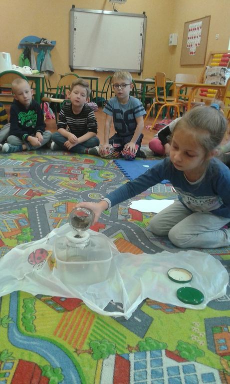 Co pływa? Co tonie? Dlaczego róża zmieniła kolor? Dlaczego woda paruje? 6-latki przeprowadzały doświadczenia i eksperymenty z wodą, próbująć znaleźć odpowiedzi na powyższe pytania. Należy zaznaczyć, że dzieci doskonale radziły sobie z zadaniami.