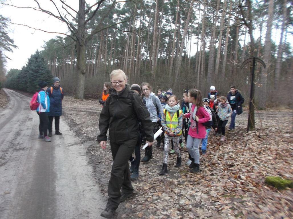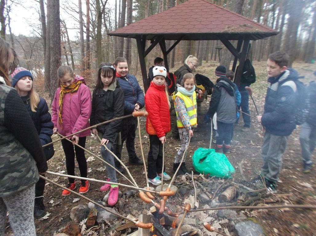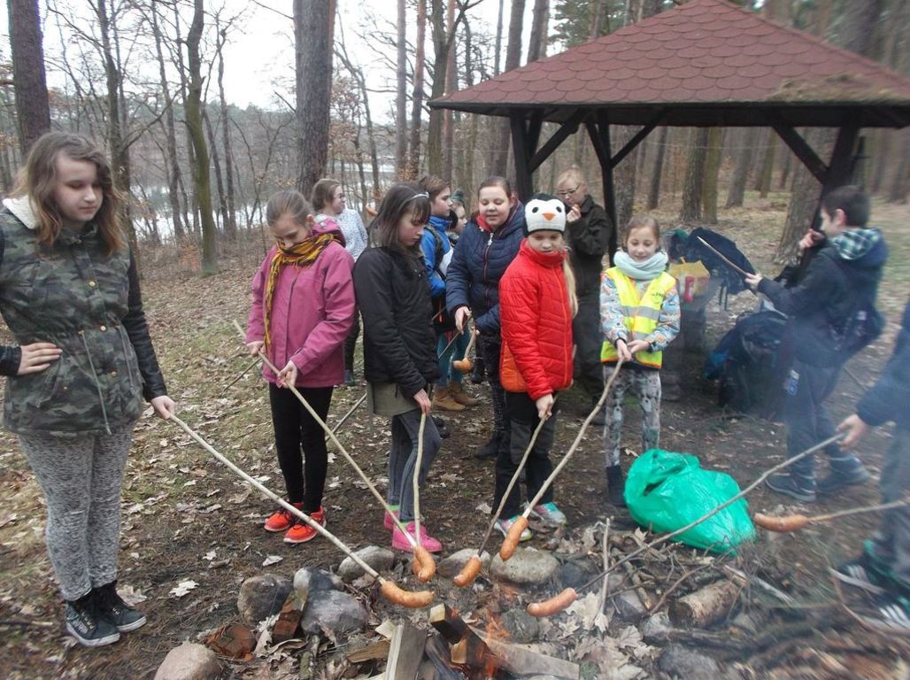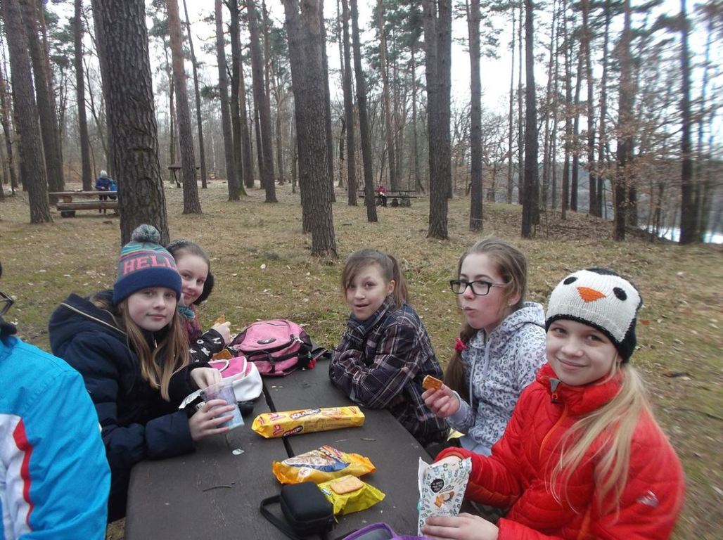 11 marca 2017 r. odbyło się wyjście terenowe Szkolnego Koła Krajoznawczo-Turystycznego. O godzinie 10.00 uczniowie z klas V, VI i gimnazjum wyruszyli pieszo ze szkoły nad Jezioro Kolejowe. Przewodnikiem tym razem była pani Paulina Michałek z Nadleśnictwa w Ośnie Lubuskim. Trasa naszej wędrówki przebiegała wzdłuż ścieżki dydaktycznej w pobliżu szkółki leśnej Nadleśnictwa. W ciekawy sposób pani Paulina opisała pracę leśnika, rolę lasu w przyrodzie, opowiadała o gatunkach zwierząt lasu i ich zwyczajach, gatunkach roślin w poszczególnych piętrach lasu. Najciekawszym etapem naszej wędrówki było wejście na teren szkółki. Tam na własne oczy dzieci zobaczyły uprawy drzew liściastych i iglastych. Po dotarciu nad Jezioro Kolejowe rozpaliliśmy ognisko i odbyło się pieczenie kiełbasek. Chłopcy zagrali w piłkę. Pełni wrażeń, zadowoleni, trochę zmęczeni wróciliśmy z naszej wycieczki.