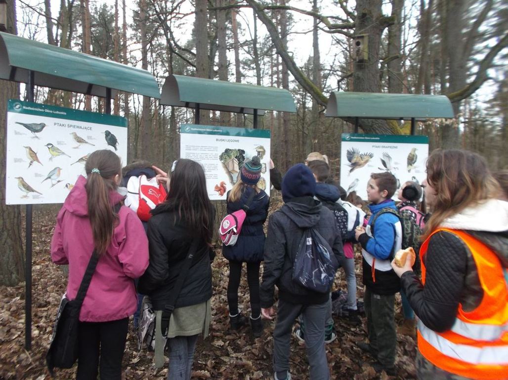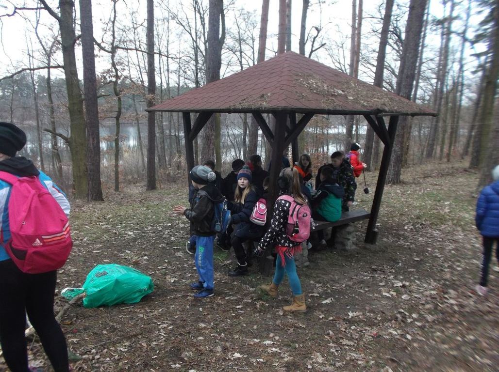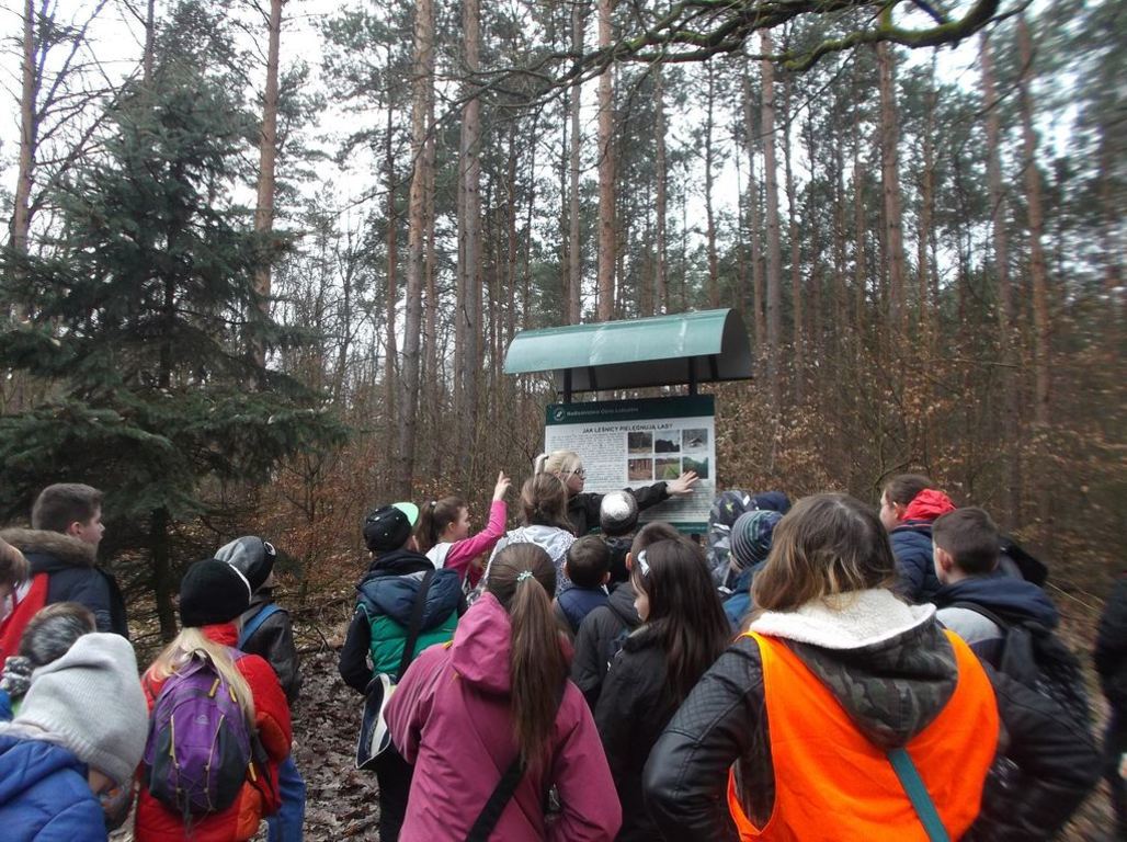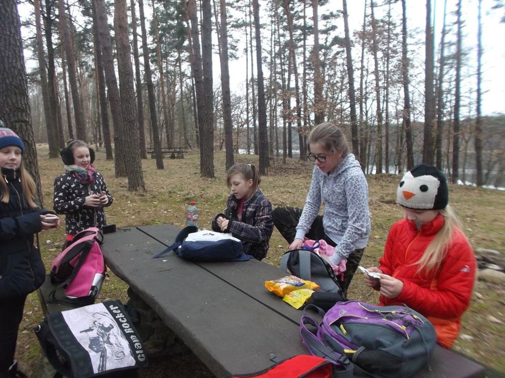 11 marca 2017 r. odbyło się wyjście terenowe Szkolnego Koła Krajoznawczo-Turystycznego. O godzinie 10.00 uczniowie z klas V, VI i gimnazjum wyruszyli pieszo ze szkoły nad Jezioro Kolejowe. Przewodnikiem tym razem była pani Paulina Michałek z Nadleśnictwa w Ośnie Lubuskim. Trasa naszej wędrówki przebiegała wzdłuż ścieżki dydaktycznej w pobliżu szkółki leśnej Nadleśnictwa. W ciekawy sposób pani Paulina opisała pracę leśnika, rolę lasu w przyrodzie, opowiadała o gatunkach zwierząt lasu i ich zwyczajach, gatunkach roślin w poszczególnych piętrach lasu. Najciekawszym etapem naszej wędrówki było wejście na teren szkółki. Tam na własne oczy dzieci zobaczyły uprawy drzew liściastych i iglastych. Po dotarciu nad Jezioro Kolejowe rozpaliliśmy ognisko i odbyło się pieczenie kiełbasek. Chłopcy zagrali w piłkę. Pełni wrażeń, zadowoleni, trochę zmęczeni wróciliśmy z naszej wycieczki.