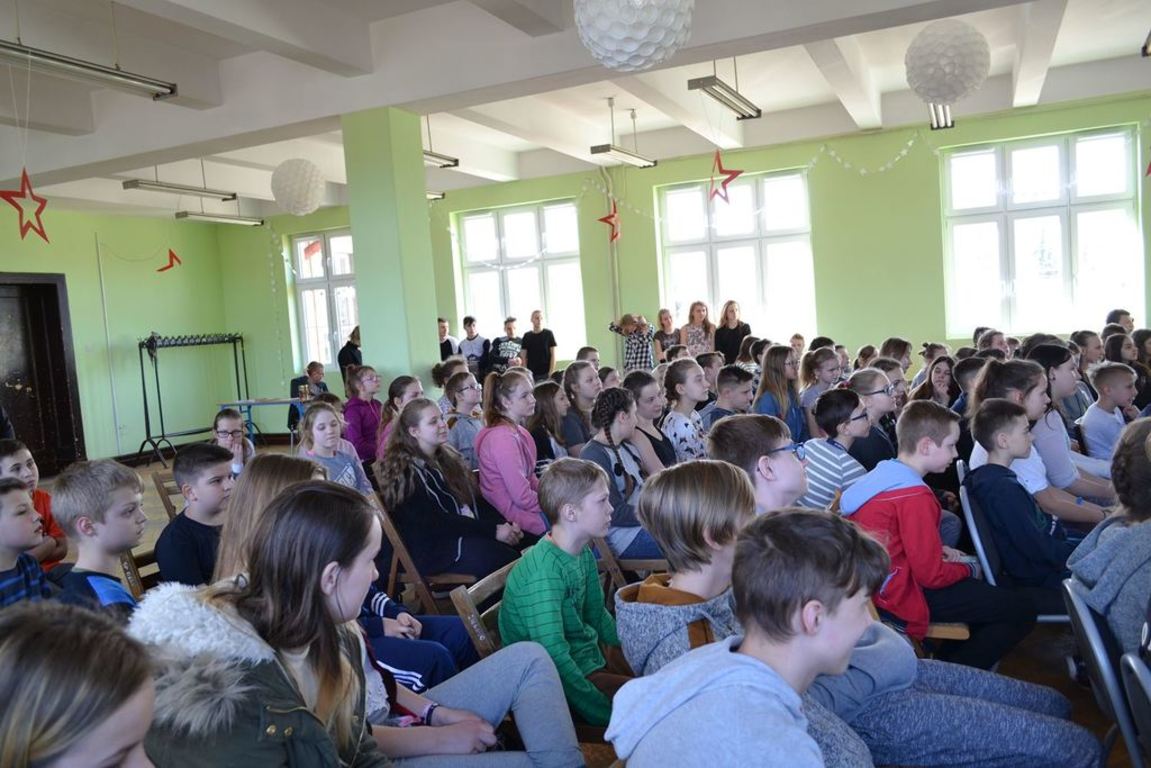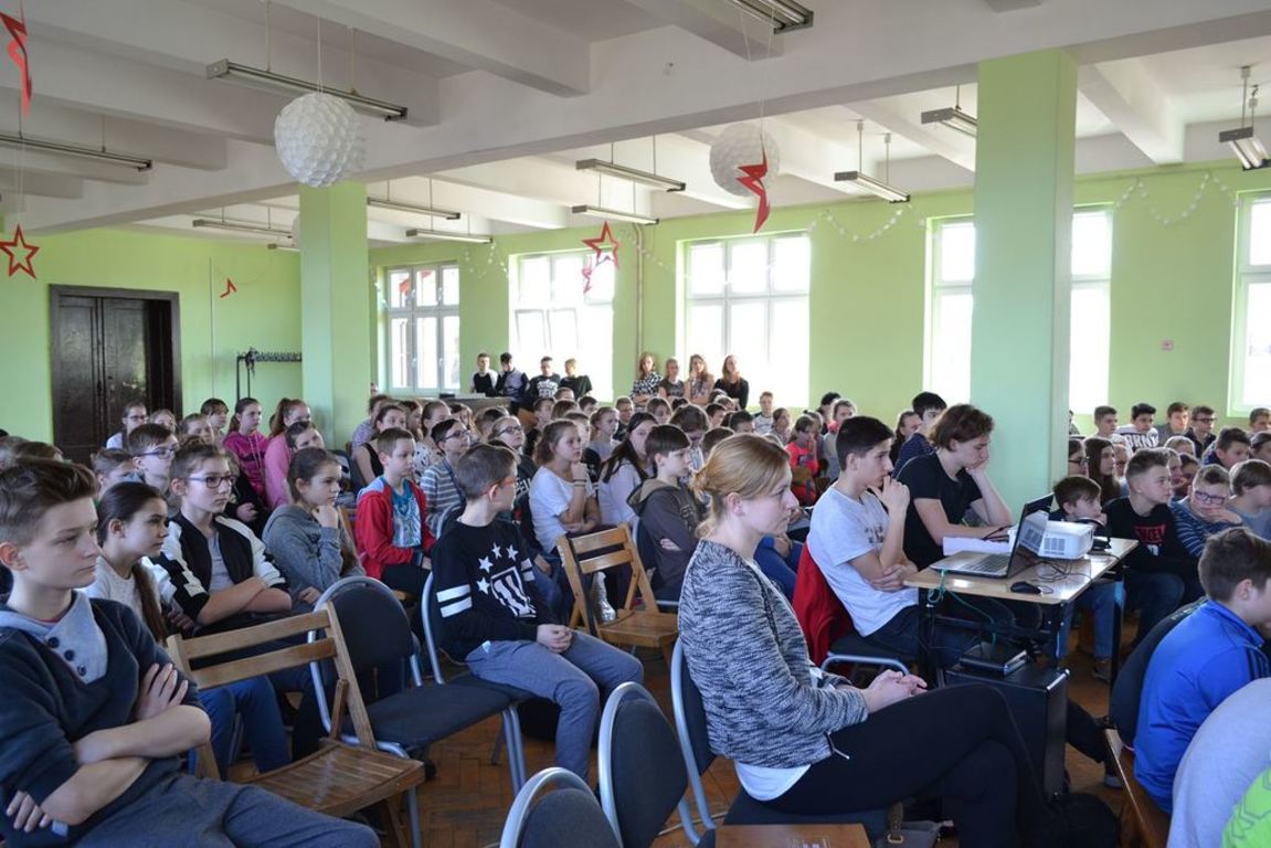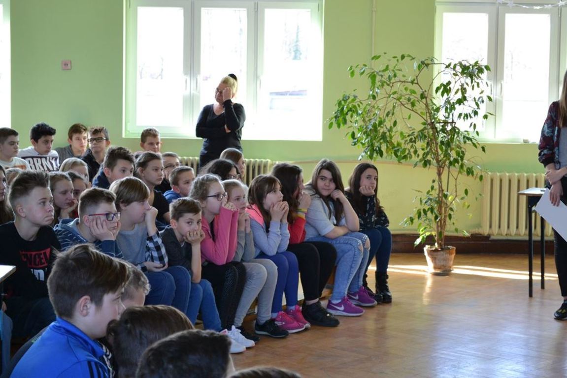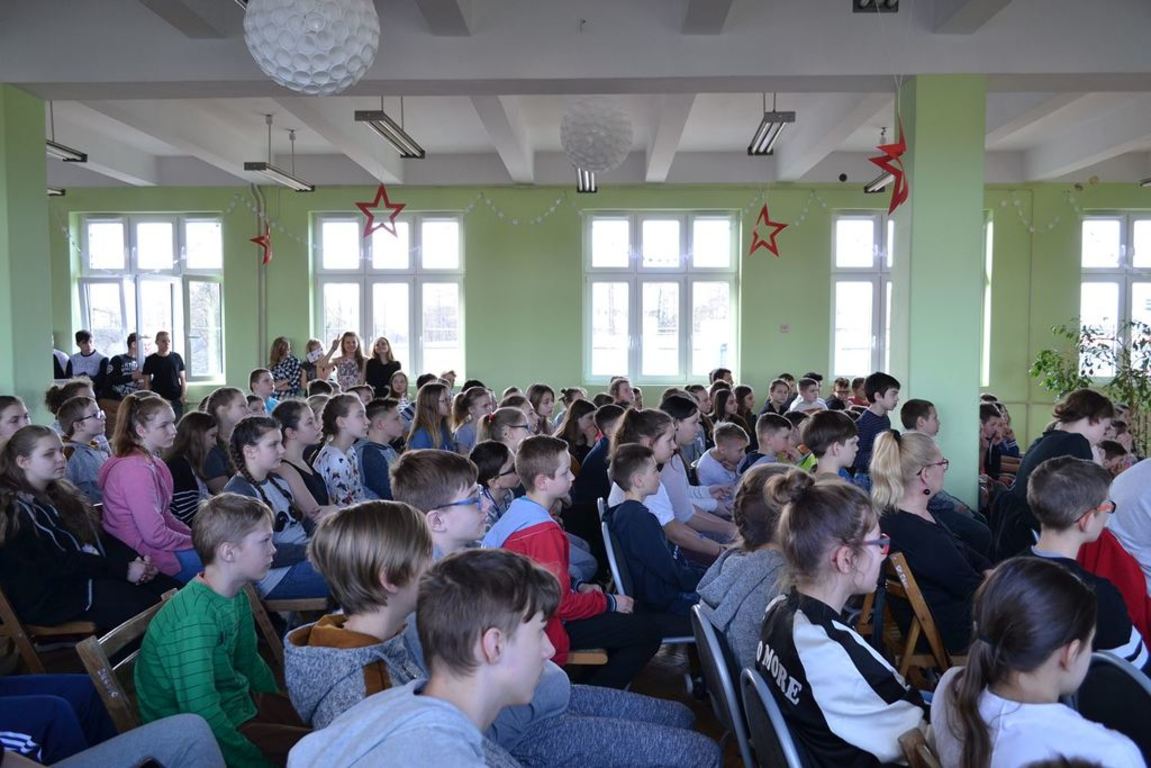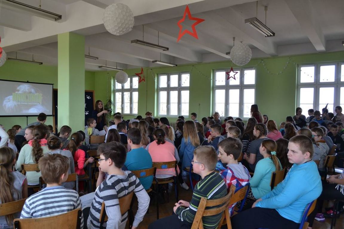Julia Bem i Hanna Biernacka, uczennice kl. II a gimnazjum, zainicjowały w naszej szkole akcję pomocy psom ze schroniska w Gorzowie Wielkopolskim. Prezentacja jej założeń odbyła się 8.03.2017 r. dla gimnazjum, a 15.03. tego roku dla kl. IV-VI szkoły podstawowej. Głównym celem wystąpienia było zwrócenie uwagi słuchaczy na bezduszność ludzką i związane z tym problemy zwierząt trafiających do schronisk.