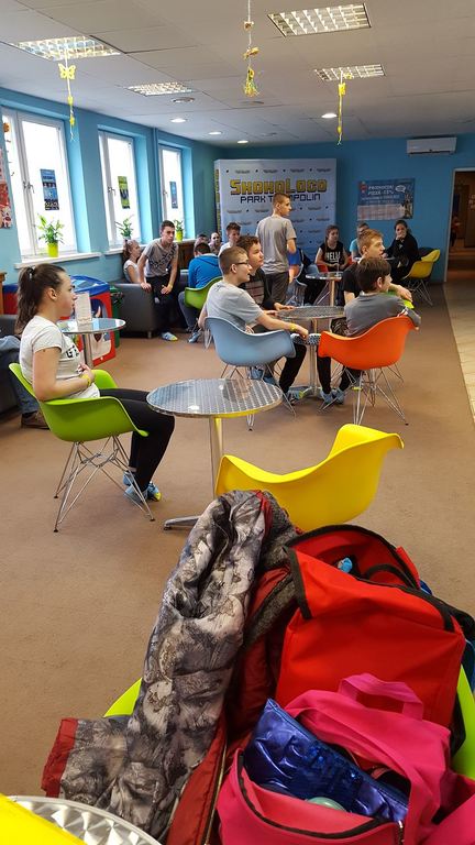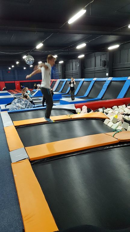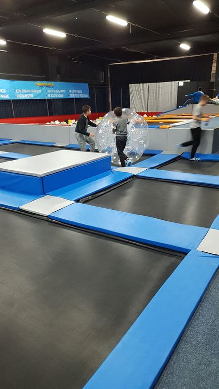 Głównym celem niniejszego wyjazdu był jednak Park Trampoli "SKOKOLOCO". Uczniowie na miejscu otrzymali skarpety antypoślizgowe, a następnie zapoznali się z instruktażem bezpiecznego korzystania z obiektu. Pod czujnym okiem trenerki rozpoczęli rozgrzewkę. Przez godzinę każdy mógł korzystać z dowolnego miejsca całego obiektu. A było w czym wybierać .... Boisko do zbijaka, basen z gąbkami, boisko do koszykówki - każdy znalazł coś odpowiedniego dla siebie. Wszystkim bardzo się podobała, panowała przyjacielska atmosfera. Była to dla naszych uczniów ciekawa forma rekreacji.