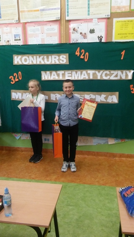 26 kwietnia w Rzepinie odbył się powiatowy konkurs matematyczny „MAT-RZEPKA” dla klas III szkoły podstawowej. W naszej szkole odbyły się wcześniej eliminacje, które wyłoniły dwóch najzdolniejszych, młodych matematyków. W Rzepinie do konkursu przystąpiła uczennica klasy III d – Olga Trzeciak oraz uczeń klasy III b – Marek Trzeciak.