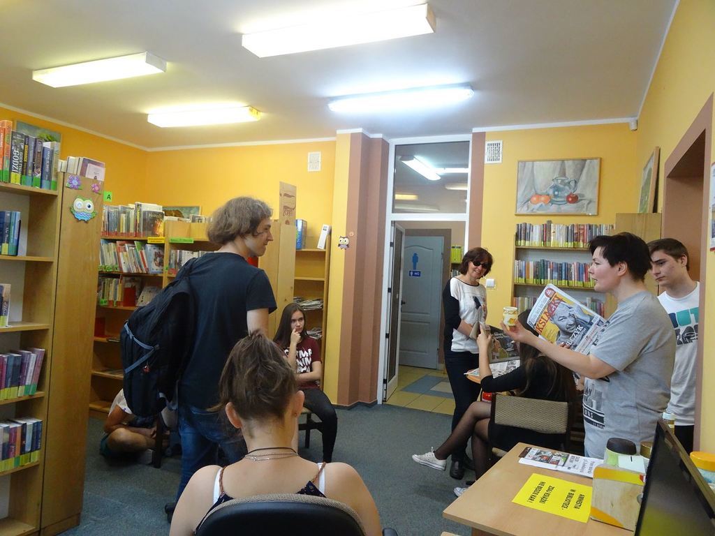 19 maja 2017r. uczniowie klasy III b i III c gimnazjum wraz z wychowawcami i bibliotekarką szkolną panią Justyną Kramarzewską odwiedzili w ramach współpracy Bibliotekę Miejską w Ośnie Lubuskim, gdzie pani Katarzyna Jagiełło - bibliotekarka tejże książnicy, zapoznała przyszłych absolwentów gimnazjum z księgozbiorem, zasadami funkcjonowania biblioteki i zachęcała do zapisania się uczniów w poczet czytelników oraz korzystania z jej zbiorów.