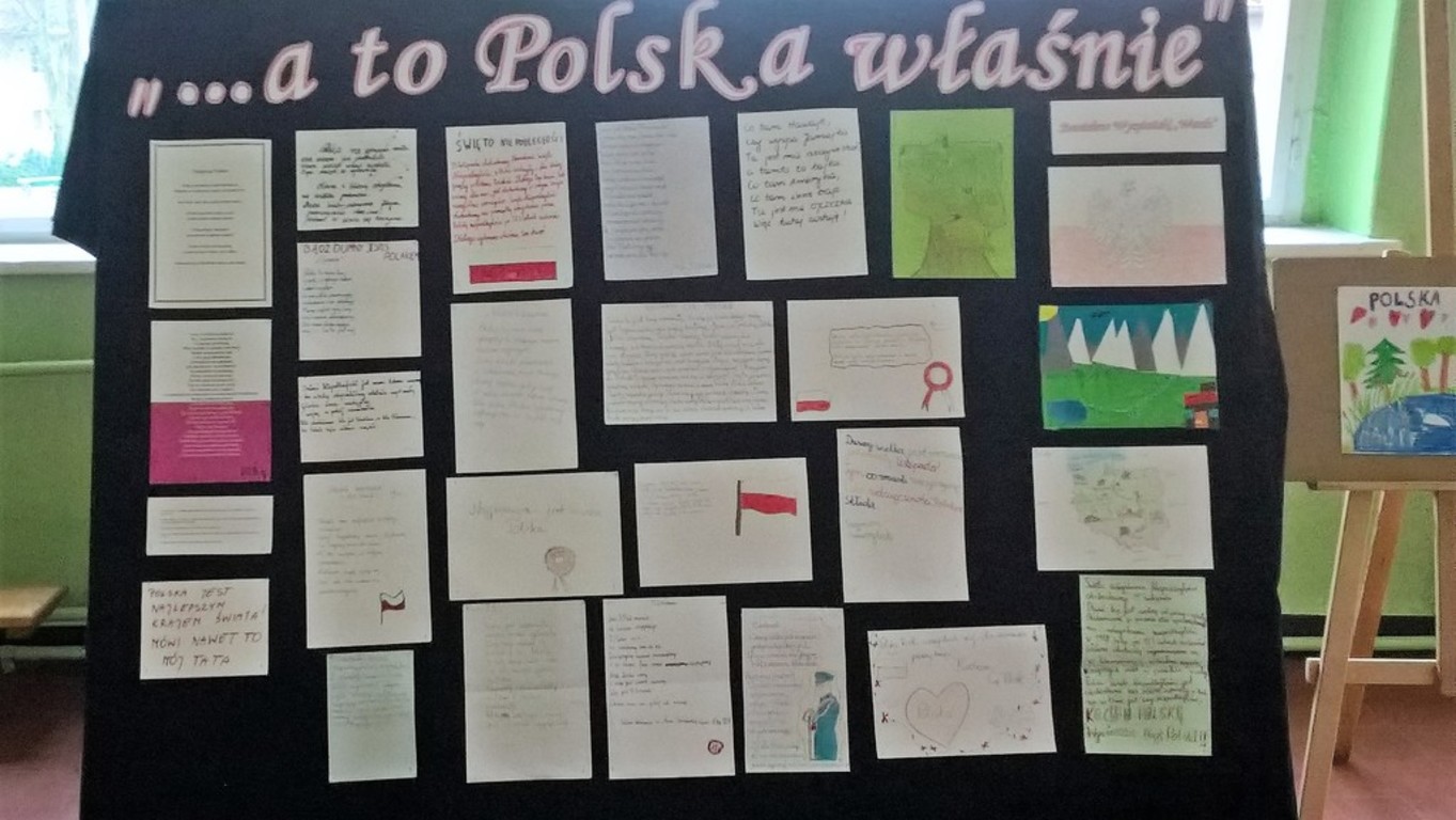 Jednak Polska to nie tylko przeszłość, to także, a może przede wszystkim, teraźniejszość i przyszłość, dlatego uczniowie: ci mali i ci więksi w wybranych przez siebie formach, tj. plastycznych lub pisemnych ukazali nasz kraj współczesny-efekt tych obserwacji można obejrzeć na wystawie znajdującej się tradycyjnie na pierwszym piętrze. Patrząc na te prace, z optymizmem możemy spoglądać w przyszłość, bo tak kreatywni twórcy i wnikliwi obserwatorzy na pewno w dorosłym życiu będą aktywnie działać na rzecz swojej ojczyzny.