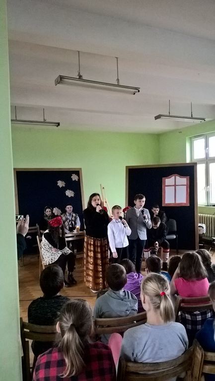 W naszej Szkole Podstawowej uroczyście i na różne sposoby świętowany był Dzień Niepodległości. (Można o tym przeczytać we wcześniejszej relacji.) Jednak dopełnieniem tych obchodów, a właściwie taką ogromną kropką nad i był 15.11., gdy w szkolnej auli zostało wystawione przedstawienie „Pisk białego orła”. Przygotował je kilkunastoosobowy zespół młodszych i starszych uczniów, dziewcząt i chłopców pod kierunkiem księdza Mariusza Żurawicza. Zanim doszło do wystawienia spektaklu w szkole, odbył się on już w kościele i wśród mieszkańców Ośna słychać było głosy zachwytu, jednak, żeby wyrobić sobie własne zdanie, trzeba przedstawienie obejrzeć samemu, więc zarówno nauczyciele, jak i uczniowie z ciekawością zebrali się w auli. I okazało się, że młodzi, znakomici artyści wraz ze swoim doskonałym reżyserem przenieśli widzów, jak w wehikule czasu, do okresu pierwszej wojny światowej i niezapomnianego roku 1918. Proste, aczkolwiek znakomite stroje z epoki, skromna, ale jakże wymowna dekoracja, interesujące eksponaty (szczególne zainteresowanie widzów wzbudził karabin) wprowadziły wszystkich w niezwykły nastrój, jednak te elementy spektaklu nic by nie znaczyły bez najważniejszej części, czyli montażu słowno-muzycznego. Był on przepiękny. Mądry, wzruszający, chwytający za serce, wywołujący dreszcze, a także szczere łzy wzruszenia, do których nikt nie wstydził się przyznać. Po prostu niesamowity. Kawał, trudnej polskiej historii zakończonej najszczęśliwszym, choć okupionym krwią patriotów, wydarzeniem- zwycięstwem: ODZYSKANIEM PRZEZ POLSKĘ I POLAKÓW NIEPODLEGŁOŚCI po 123 latach niewoli. Wspaniałe teksty, jeszcze wspanialsze pieśni to wszystko zasługuje na ogromne brawa i wyrazy uznania. To przedstawienie na pewno było wspaniałą lekcją historii, na długo pozostanie w pamięci widzów. I słowa uznania naprawdę nie są wymuszone, płyną z głębi serca, czego najlepszym dowodem była cisza panująca na spektaklu i gromkie brawa po nim. Gratulacje dla całego zespołu i oczywiście księdza Mariusza. Z niecierpliwością czekamy na kolejne tak cudowne i ekscytujące przedstawienia.