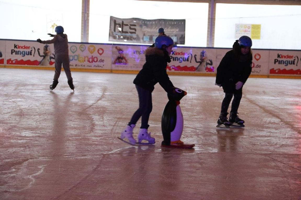 Mimo iż kalendarz wyraźnie sugeruje, że jest zima, ta mroźna pora roku nie może się zdecydować, czy do Ośna przyjść, czy nie. Robi delikatne podchody, nieco przymrozi, lekko sypnie śniegiem, ale swojej prawdziwej twarzy póki co nie pokazuje. Nie martwi to dorosłych, jednak nieco psuje humory młodszym ośnianom, którzy marzą, by jak w filmowej Krainie lodu sióstr Elsy i Anny móc ulepić bałwanka tak sympatycznego jak Olaf albo urządzić sobie śnieżne igloo lub porzucać śnieżkami. Nic z tego, pogoda nie sprzyja takim zabawom. By choć trochę zrekompensować dzieciom kaprysy pogody, w sobotę 27.01.2018 nauczycielki Ewa Stefaniak oraz Monika Jurkiewicz-Wnuk przy wsparciu jednego z rodziców zorganizowały wyjazd na lodowisko w Słubicach. W opiece nad gromadką młodych sportowców pomagały Małgorzata Soloch i Paulina Góral. Z możliwości pośmigania na lodzie skorzystało 47 osób z klas 5a, 5b, 4b i 3c. Zabawa była przednia, tym bardziej, że oprócz uczniów z naszej szkoły nie było innych osób, gdyż lodowisko było otwarte specjalnie dla nas. W trakcie dwugodzinnego pobytu w słubickim ośrodku okazało się, że wśród naszych uczniów są naprawdę zdolni łyżwiarze, którzy na lodzie czują się jak ryba w wodzie: przeplatanki, piruety, jazda tyłem, podskoki, slalomy i inne figury łyżwiarskie robiły naprawdę ogromne wrażenie. Jednak lodowi nowicjusze także świetnie sobie radzili, pewności siebie dodawały im zaprzyjaźnione pingwinki (kto nie wie: specjalne jeździki-podpórki dla początkujących), a kaski wzmacniały poczucie bezpieczeństwa. Nikt nikogo nie wytykał palcami, bardziej zaawansowani udzielali rad początkującym. Nie obyło się bez upadków, ale jak to się mówi: „Przez trudy, do gwiazd” i „Trening czyni mistrza”, więc następnym razem będzie lepiej. W chwilach odpoczynku od lodowiska na chętnych czekała gorąca czekolada albo stoły do cymbergaja. Po dwóch bardzo aktywnie spędzonych godzinach większość uczestników była zdziwiona, że już czas oddawać wypożyczony sprzęt. Zabawa dobiegła końca, zmęczeni, ale zadowoleni uczniowie wrócili do domów. Kolejny raz okazało się, że dobra rozrywka to nie tylko komputery i smartfony. Może zima zachęcona taką uczniowską tęskną aktywnością za sportami zimowymi przybędzie do Ośna na zbliżające się dużymi krokami zimowe ferie? Kto wie?