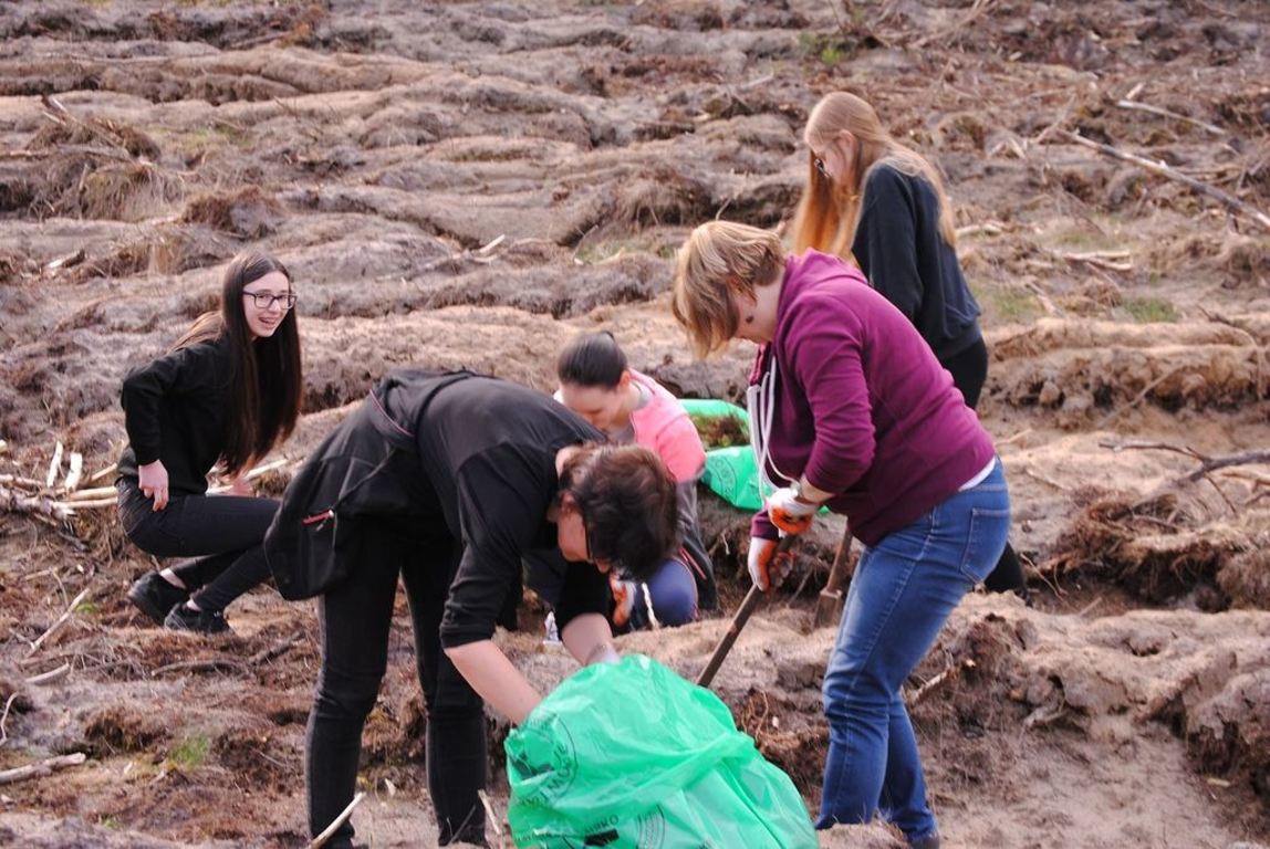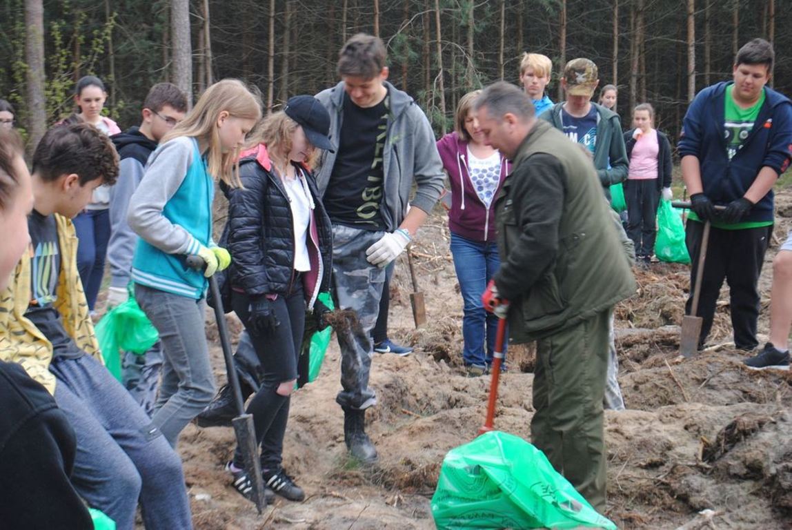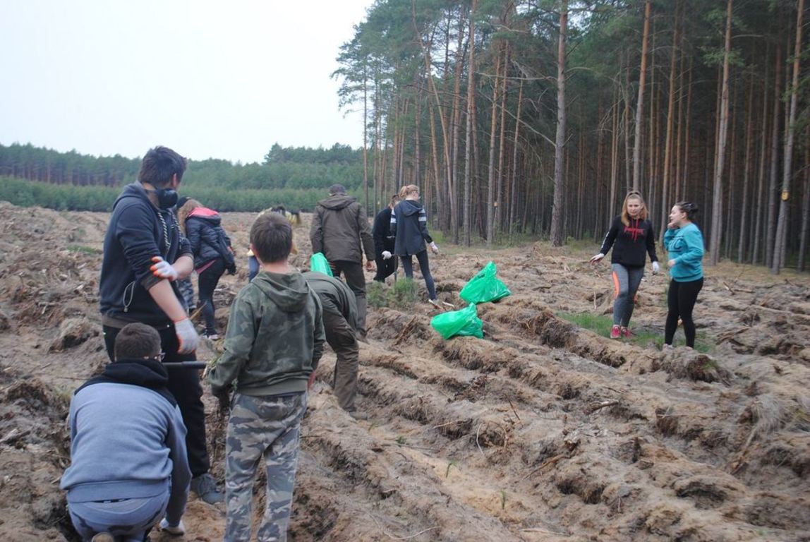 „Gdzie strumyk płynie z wolna, rozsiewa zioła maj, sosenki rosną młode, a wkoło szumi gaj”-tak, parafrazując słowa znanej piosenki, można podsumować akcję „Sadzimy 1000 drzew na minutę”, w której 24.04.2018 roku na terenie Leśnictwa Gronów wzięli udział uczniowie klas II a oraz II c ośniańskiego Gimnazjum. We wtorek rano wspomniana wyżej młodzież (w sumie 28 osób) pod opieką Pani Barbary Jurkowskiej - nauczycielki geografii, przyrody i opiekunki Szkolnego Koła Turystycznego, a tym samym specjalistki od szeroko rozumianego świata natury oraz Pani Małgorzaty Soloch pełniącej tego dnia rolę szkolnej dziennikarki, w świetnych nastrojach (wszak nie będzie tradycyjnych lekcji tylko nauka przez praktykę) i z dziarskimi minami ruszyli do autokaru, który zawiózł ich do lasu w okolicach Gronowa. Po drodze spotkali się z gospodarzem gronowskiego Leśnictwa Panem R. Maliną, który pokierował ich na miejsce niezwykłej lekcji. Tam czekali już na nich pracownicy Nadleśnictwa Ośno Lubuskie: Państwo Joanna Bujak-Greszta i Sebastian Greszta oraz Pan Mirosław Chrzanowski, a także malutkie sadzonki sosny pospolitej i niezbędne do ich posadzenia kostury. Był też spory obszar ziemi czekającej na obsadzenie. No, ale najpierw szkolenie z zakresu sadzenia. Okazało się, że wbrew pozorom, to wcale nie jest takie proste, bo wystarczy źle chwycić sadzonkę a już traci ona wierzchołek i nie urośnie, natomiast splątane pod ziemią korzenie mogą spowodować, że w przyszłości drzewo będzie bardziej narażone na wywrócenie w czasie wichury z powodu zbyt słabego ukorzenienia. Ważne okazało się również właściwe używanie kostura: kopanie nim otworów na sadzonkę, dociskanie korzeni oraz …..odmierzanie odległości między młodymi drzewkami. Na szczęście to wszystko wyjaśnili nam leśnicy. Następnie Pani Joanna rozdała wszystkim gustowne robocze rękawiczki, panowie wręczyli kostury oraz worki na sadzonki i uczniowie dobrani w pary (operator kostura i sadzonkarz - nazwy wymyślone na potrzeby tej relacji) udali się do sadzonkowego dołu, w którym Julka Płaskota i Klaudia Badyna „obdarowywały” wszystkich małymi drzewkami. Rozpoczęło się sadzenie, obie opiekunki także stanęły na jednej z rajek i również postanowiły przyczynić się do powstania nowego lasu. Od razu widać było, kto najlepiej radzi sobie z tym zadaniem. Od początku do końca nie mieli sobie równych Oliwia Raniewicz i Magda Pych oraz Grzesiek Piechowiak, Wiktor Palczewski i Fabian Koszela, ale tuż za nimi cały czas byli Kacper Stasik z Elą Pawlak oraz Filip Sienkiewicz z Nikolą Szczecińską. Jednak to nie były wyścigi, każdy pracował w swoim tempie, bo nie chodziło o szybkość, tylko o jakość. A pracownicy nadleśnictwa cały czas dbali o to, by była ona na najwyższym poziomie, pomagali, podpowiadali i jeśli trzeba było, kolejny raz demonstrowali, jak dobrze posadzić sosenkę. Efekty naszej pracy ocenił również zastępca nadleśniczego Pan Tomasz Zych. Jego słowa, że to będzie w przyszłości „nasz” las i że będziemy mogli pokazać go swoim potomkom, okazały się niezwykle motywujące. Wiedząc, że „nie będzie nas, będzie las”, obsadziliśmy prawie cały przygotowany teren, posadziliśmy niemal sześć tysięcy drzewek, więc w szampańskich nastrojach (wszak sadziliśmy Pinus sylvestri), udaliśmy się na zasłużony poczęstunek nad Jezioro Gronowskie, gdzie już czekało na nas ognisko i kiełbaski, a na pamiątkę długopisy i smycze oraz naklejki promujące akcję. Okazało się, że z tej lekcji uczniowie wynieśli wiele pouczeń. Dowiedzieli się, że na grzyby do „swojego” lasu będą mogli pójść dopiero za kilkanaście lat, bo tak długo rośnie, że chwila nieuwagi wystarczy, by spłonął, ale również, że sadzenie lasu to ciężka fizyczna praca, więc może lepiej przykładać się do nauki, by w przyszłości nie musieć fizycznie pracować, a jeśli już to tylko od czasu do czasu dla przyjemności. Akcja „Sadzimy 1000 drzew na minutę” na pewno się podobała, niektórzy pytali, kiedy będzie powtórzona. W świetnych humorach wróciliśmy do Ośna, a gdzieś w szumie drzew słychać było inną melodię piosenki sprzed lat z nowymi słowami: „Na prawo las, na lewo las, a środkiem strumyk płynie. Tu rośnie dąb, tam rośnie dąb i buczek przy buczynie. Małe sosny zielenią migają i do słońca się wciąż uśmiechają. Tak rośnie gaj, wspaniały gaj, zwierzęta mają tam raj”. I ja tam byłam, trochę drzew posadziłam, a co zobaczyłam, tutaj wszystkim przedstawiłam - Małgorzata Soloch