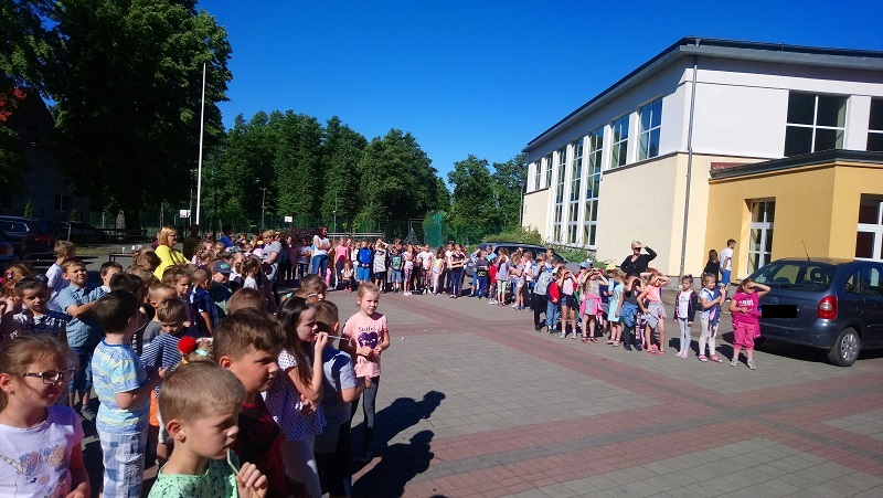 Uczniowie naszej szkoły mają głowy pełne pomysłów. Pokazali swoją kreatywność 6 czerwca 2018. Ignacy Romanowski (Mamut), Jakub Szczęsny (Duży) i Adam Wrąbel (Gumiś) pod opieką pedagoga przygotowali „bańkową przerwę” dla uczniów klas 0–III. Chłopcy zaproponowali młodszym kolegom i koleżankom półgodzinną przerwę od nauki, podczas której dzieci mogły bawić się na dziedzińcu szkolnym – puszczając bańki. Tuż po 9.00 na placu przed szkołą rozpoczęła się zabawa. Na stolikach przygotowane były miski i kubeczki z mydlanym płynem, słomki oraz inne akcesoria do robienia baniek. Dzieci z chęcią korzystały z przygotowanej atrakcji, puszczały w niebo małe i duże bańki, tańczyły i śpiewały przy bajkowej muzyce. W zabawie pomogli także: Jakub Chyb (Mały), Walentyna Kruta i Aleksandra Pirko. Organizatorzy spisali się na medal i zapowiedzieli, że z chęcią przygotują kolejne niespodzianki, aby sprawić przyjemność dzieciom z naszej szkoły.