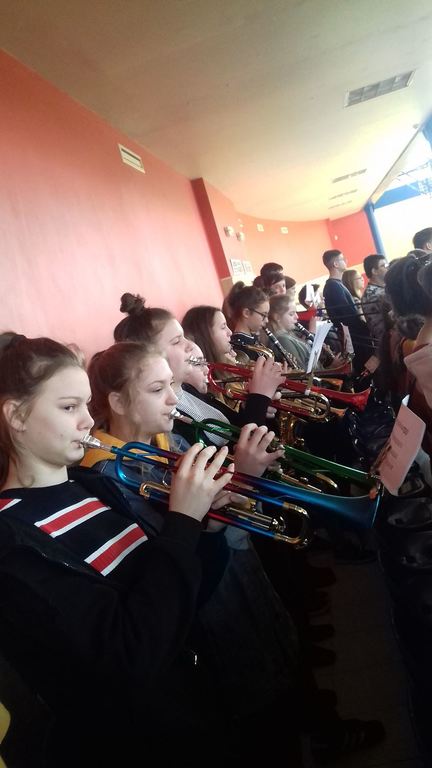 Zadaniem konkursowym jest wspólne wykonanie przez co najmniej połowę uczniów Szkoły Hymnu Państwowego oraz dwóch wybranych pieśni hymnicznych. Uczniowie naszej szkoły zaśpiewają „Marsz Polonia” oraz „Odę do radości”.