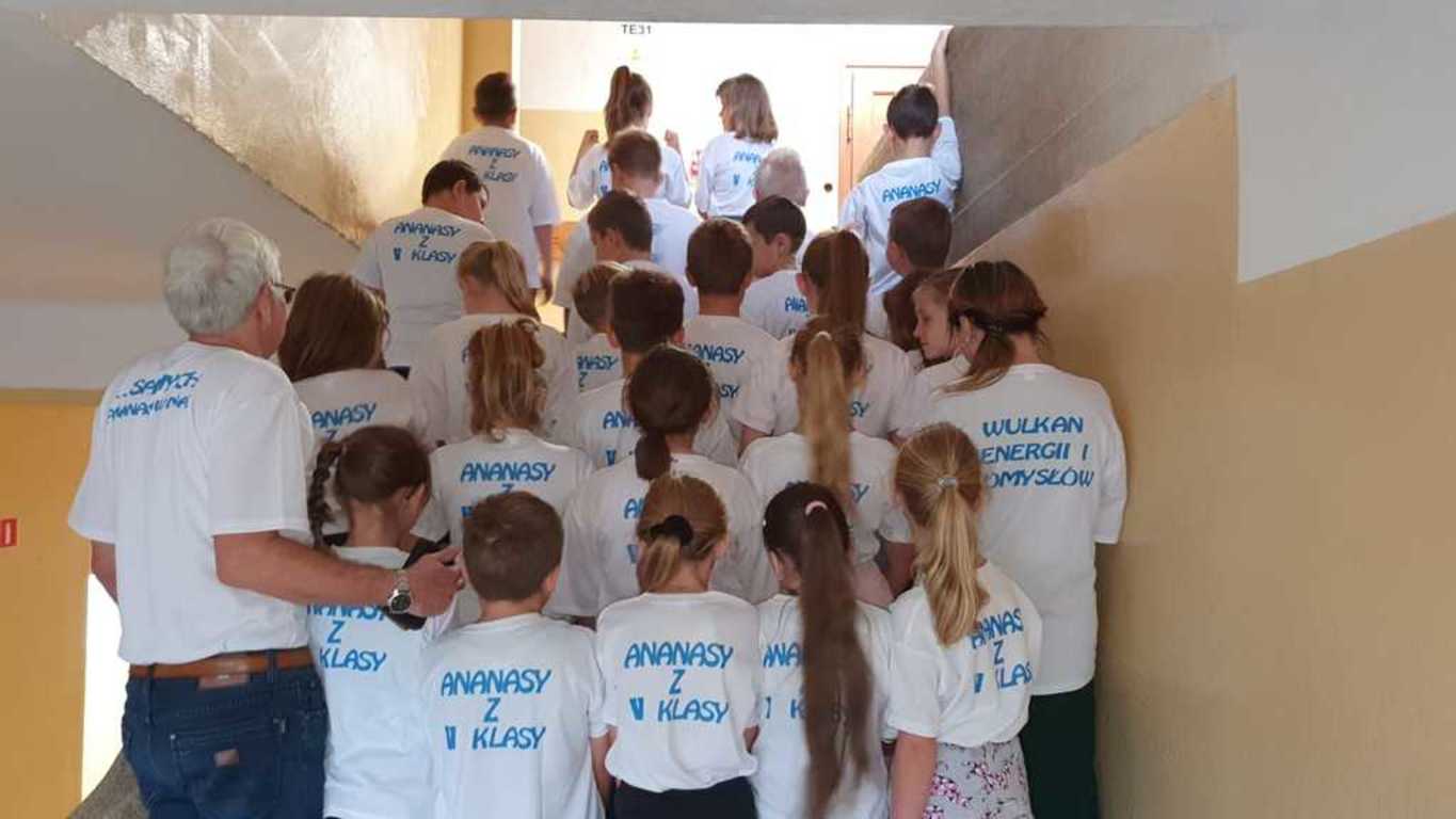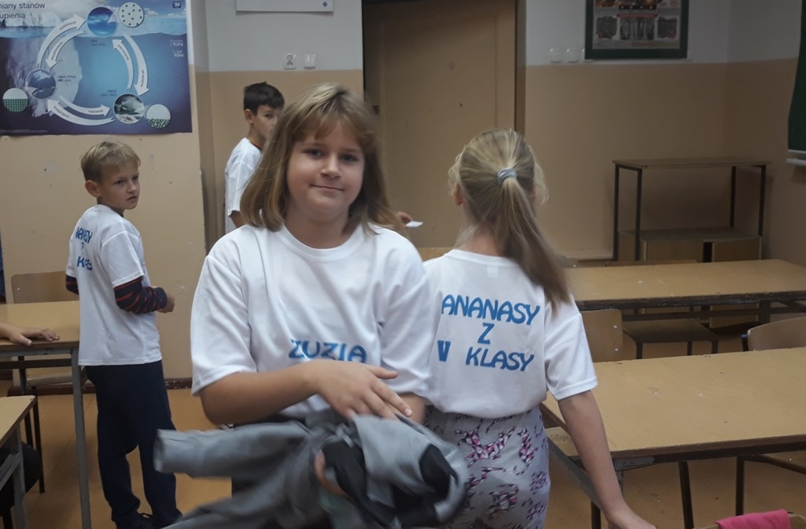 W dniu 16 października 2019 roku uczniowie klasy VA otrzymali w ramach integracji zespołu klasowego jednakowe koszulki. Z przodu umieszczone jest imię lub ksywka (wedle życzenia), z tyłu napis „Ananasy z V klasy”. Oczywiście nie zapomniano o wychowawcy, najwyższym ananasie. Otrzymał on koszulkę „Wychowawca VA...... ananasów w klasie ma”. Pomysłodawcą i osobą „trzymającą rękę na pulsie” całego przedsięwzięcia była nieoceniona mama z trójki klasowej Pani Anna Komenda. Ustaliliśmy, że dniem koszulkowym naszej klasy będzie dzień, w którym mamy godzinę wychowawczą. Chcesz nas zobaczyć, jedyna okazja co środę!