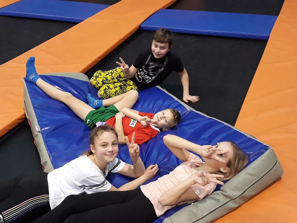 Klasa 5a w przededniu ferii zimowych pod opieką Pani Kamilli Kwiręg i wychowawcy Jerzego Baranowskiego udała się na trening fizyczny do Parku Trampolin FUN JUMP w Gorzowie Wiekopolskim. Na naszych uczniów, po ciężkim dniu nauki, czekała moc atrakcji w różnych strefach np: gąbek, koszykówki, akrobacji, zbijaka. Po krótkim przeszkoleniu, pod czujnym okiem trenerów rozpoczęło się „sportowe szaleństwo”, ale oczywiście w pozytywnym tego słowa znaczeniu. Mimo zmęczenia w drodze powrotnej humory dopisywały na tyle, że dzieci wspólnie śpiewały piosenki umilając wszystkim czas.