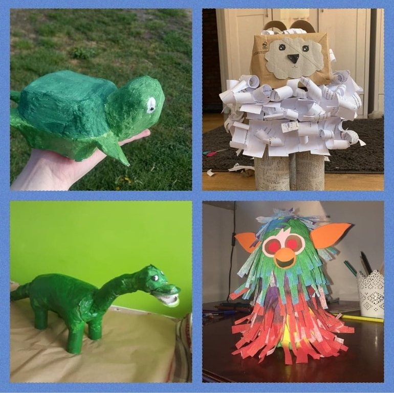 I właśnie ten „zwyczajny” papier, wyzwolił w siódmoklasistach pokłady kreatywności, której efektem są prace niezwykłe. Wykonane przez młodych twórców papierowe foki, smoki, bociany, pelikany, cieszą pomysłowością i pięknym wykonaniem. Uczniowie pokazali duży wachlarz propozycji, są rzeźby malowane, oklejone gazetą, ubrane w bibułkowe sukienki, duże, małe …