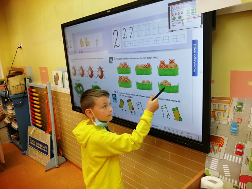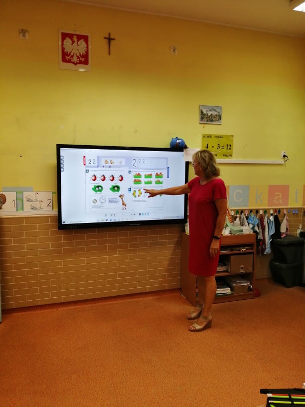 Monitor interaktywny to bardzo atrakcyjne urządzenie dydaktyczne, posiadające funkcje, którymi nie dysponują inne multimedialne sprzęty dostępne w naszej szkole. Ta nowoczesna pomoc dydaktyczna ułatwia łączenie tradycyjnego wykładu nauczyciela z prezentacją materiałów multimedialnych, którymi dysponuje. Uatrakcyjnia lekcję, a tym samym prowadzi do większej aktywności uczniów w zajęciach, co jednoznacznie wpływa na poprawę efektów kształcenia.