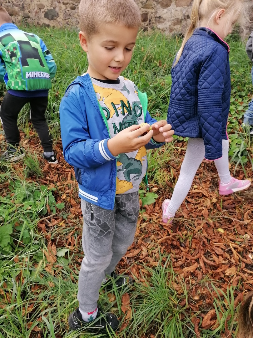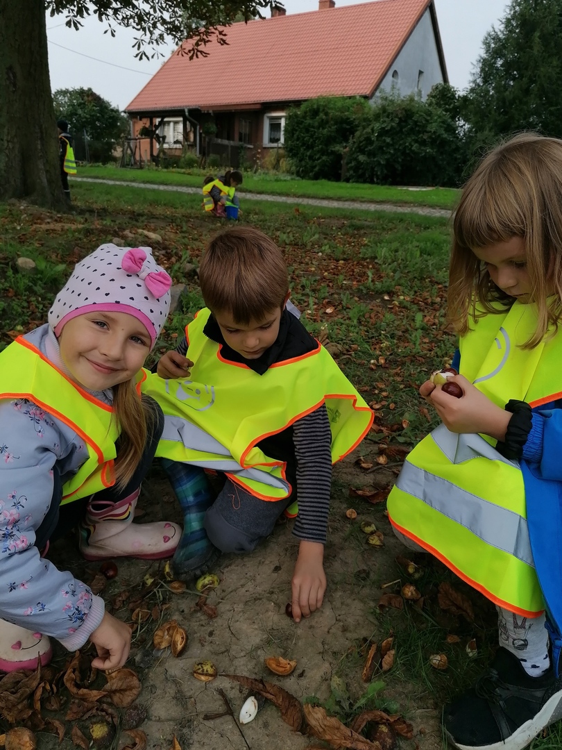 Jesień obdarza nas każdego dnia swoimi darami. Korzystając z pięknej pogody, dzieci z Oddziałów Przedszkolnych niemal każdego dnia wybierają się w okolice szkoły, w których znajdują się kasztany i zbierają je dla IGI CZEKALSKIEJ.