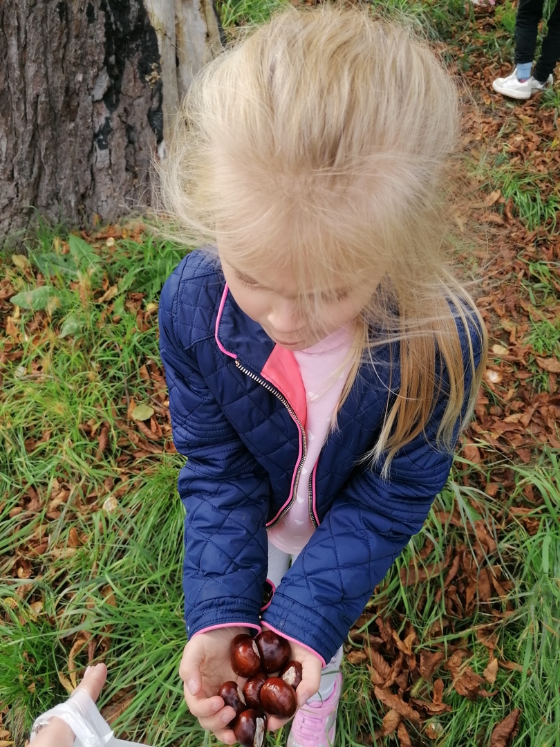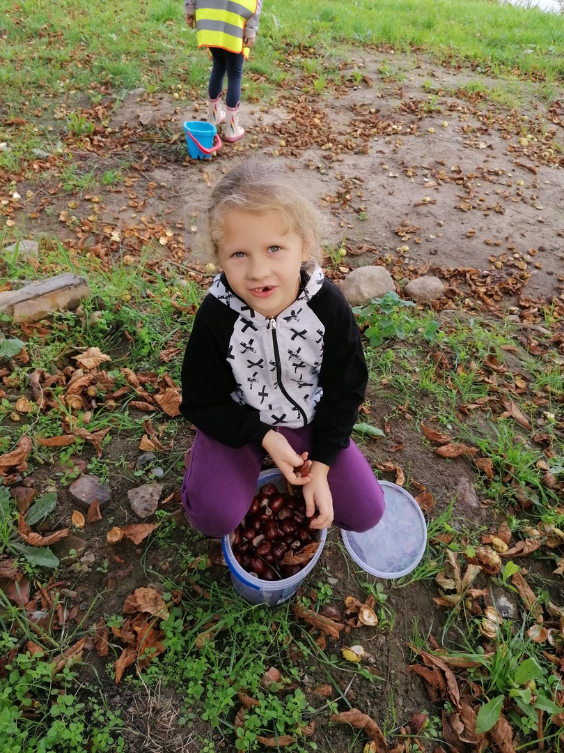 Pobyt na wycieczce w Świniarach pozwolił nam zgromadzić bardzo dużo nasion kasztanowca. Los dziewczynki nie pozostaje nam obojętny. Dzieci zaangażowały się do tego stopnia, ze po godzinach Odkrywcy i Tropiciele wybierają się z rodzicami na spacery i przynoszą z nich kasztany, które jako małe "cegiełki" pomogą w leczeniu Igi.