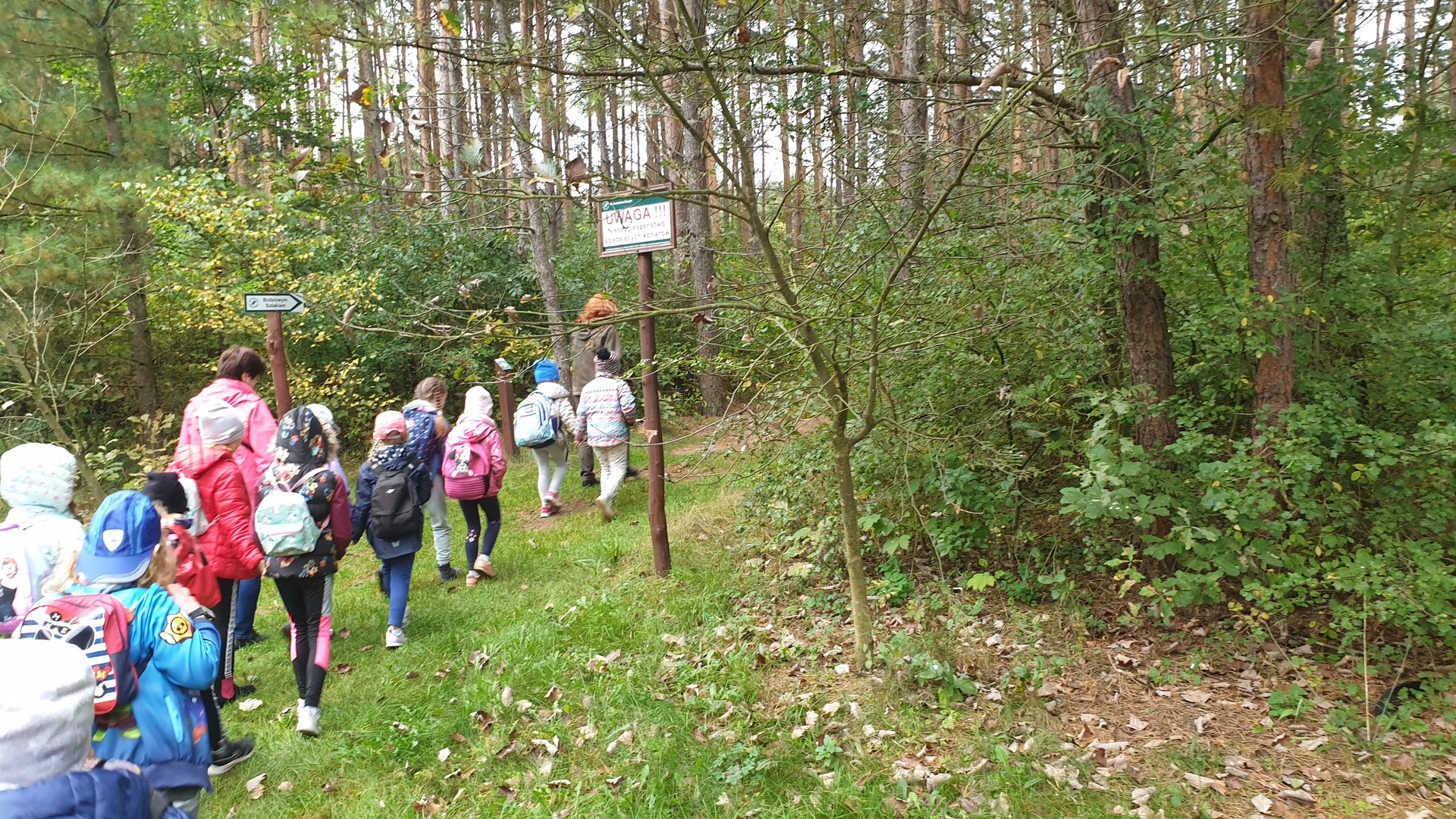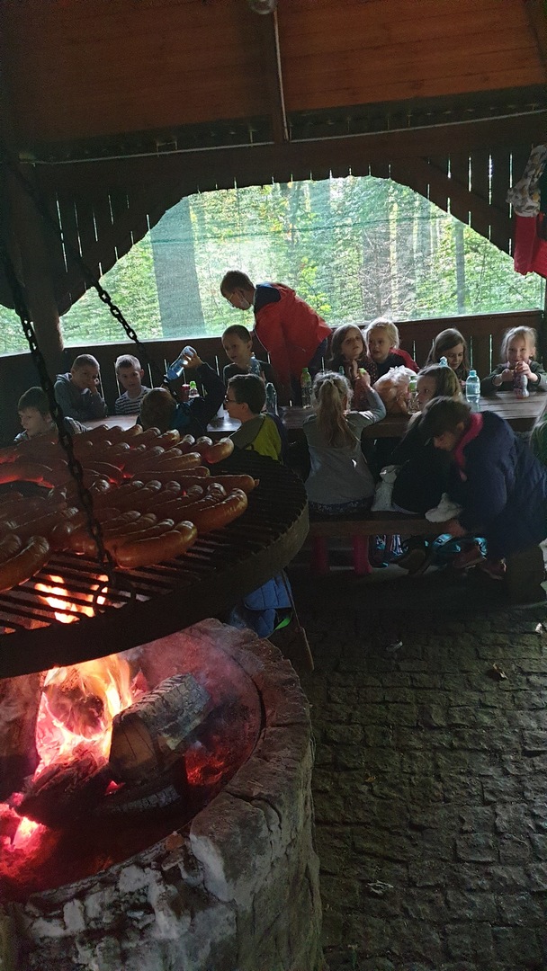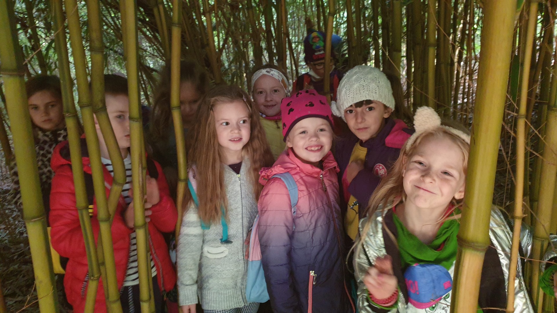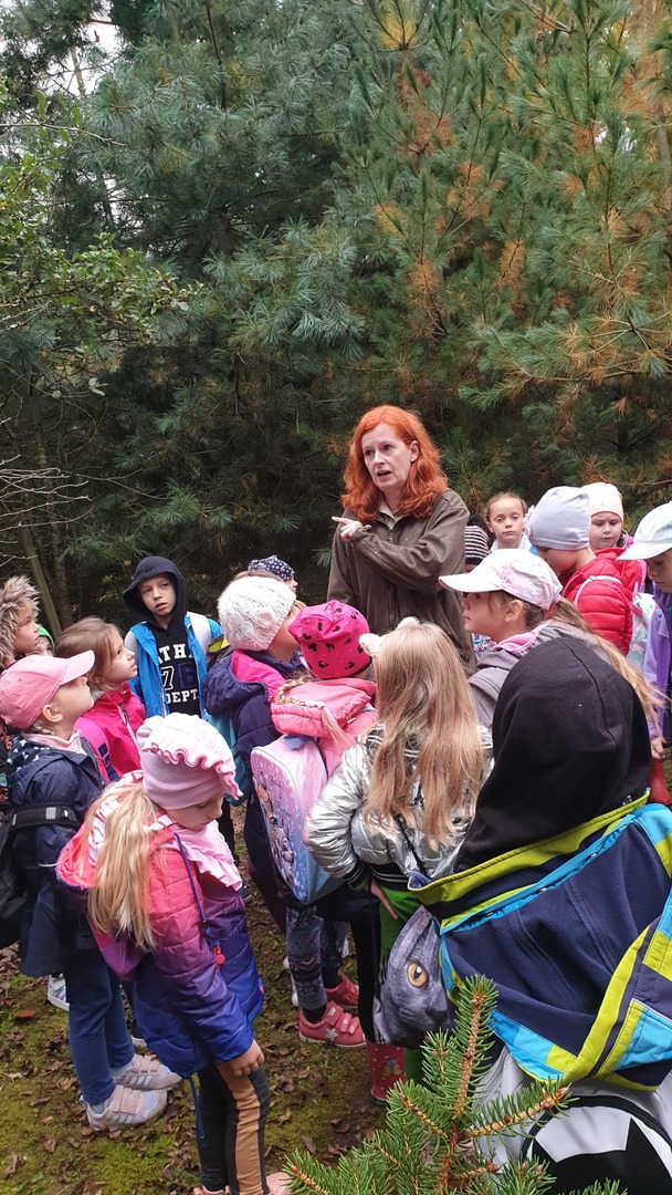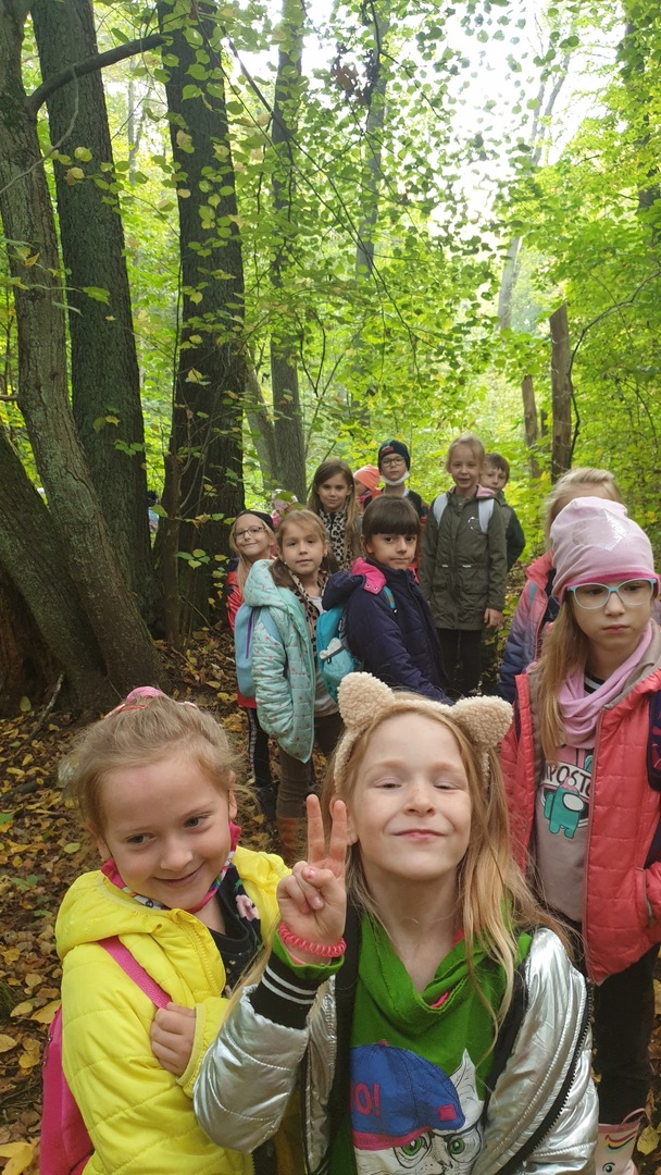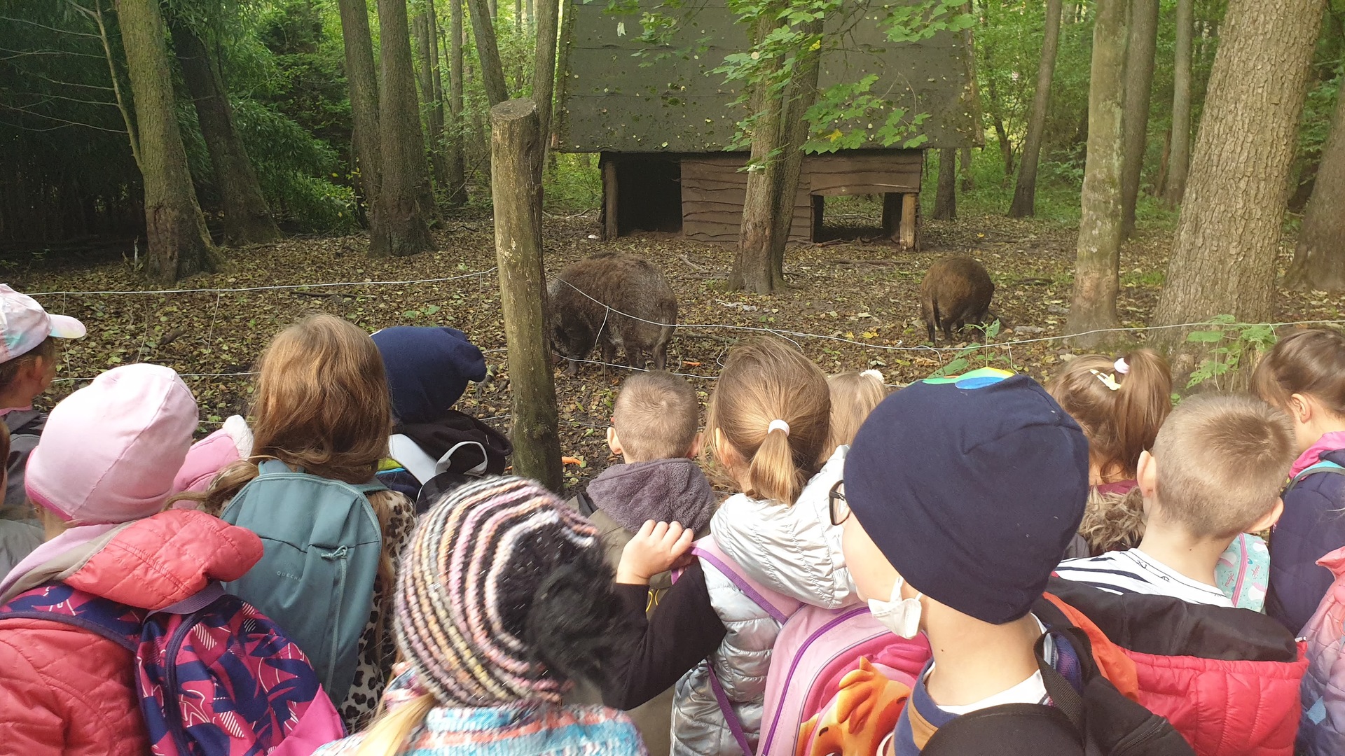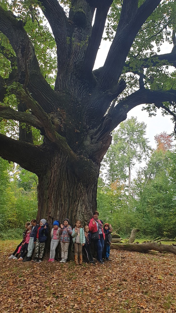 Po niezwykle urokliwym miejscu oprowadzał uczniów pracownik Nadleśnictwa Rzepin. Zgłębiając wiedzę dotyczącą zwierząt leśnych, mogliśmy podziwiać liczne żeremie i tamy bobrów, karmić dziki, udowadniając tym samym, że dzik wcale nie jest taki dziki i taki zły jak opisywał J. Brzechwa. Kolejnym etapem wycieczki była wizyta w ogrodzie dendrologicznym, który przywitał dzieci pięknem jesiennych barw i niezliczonymi okazami różnorodnych gatunków drzew i roślin. Uczniowie mieli możliwość poczuć się jak w „tropikach ”, przedzierając się przez las bambusowy w drodze do bardzo okazałego pomnika przyrody, którym był 700 letni dąb „Piast”. Mali poszukiwacze przygód mogli na zakończenie wyprawy upiec kiełbaski na grillu.