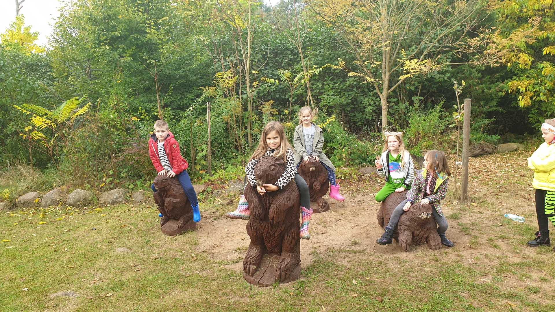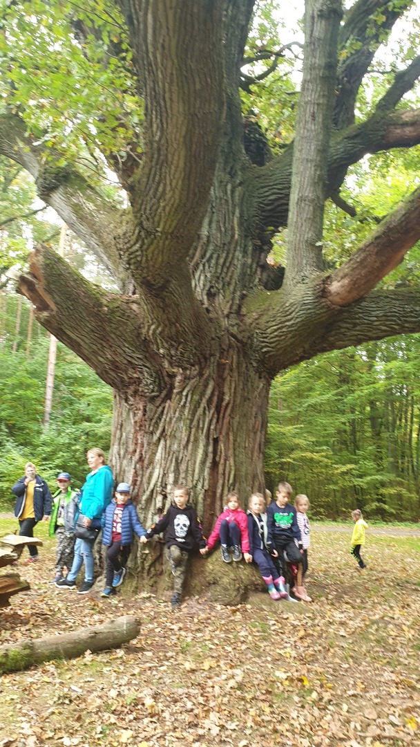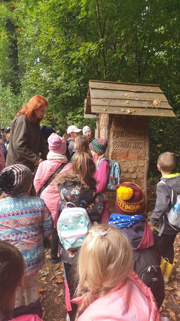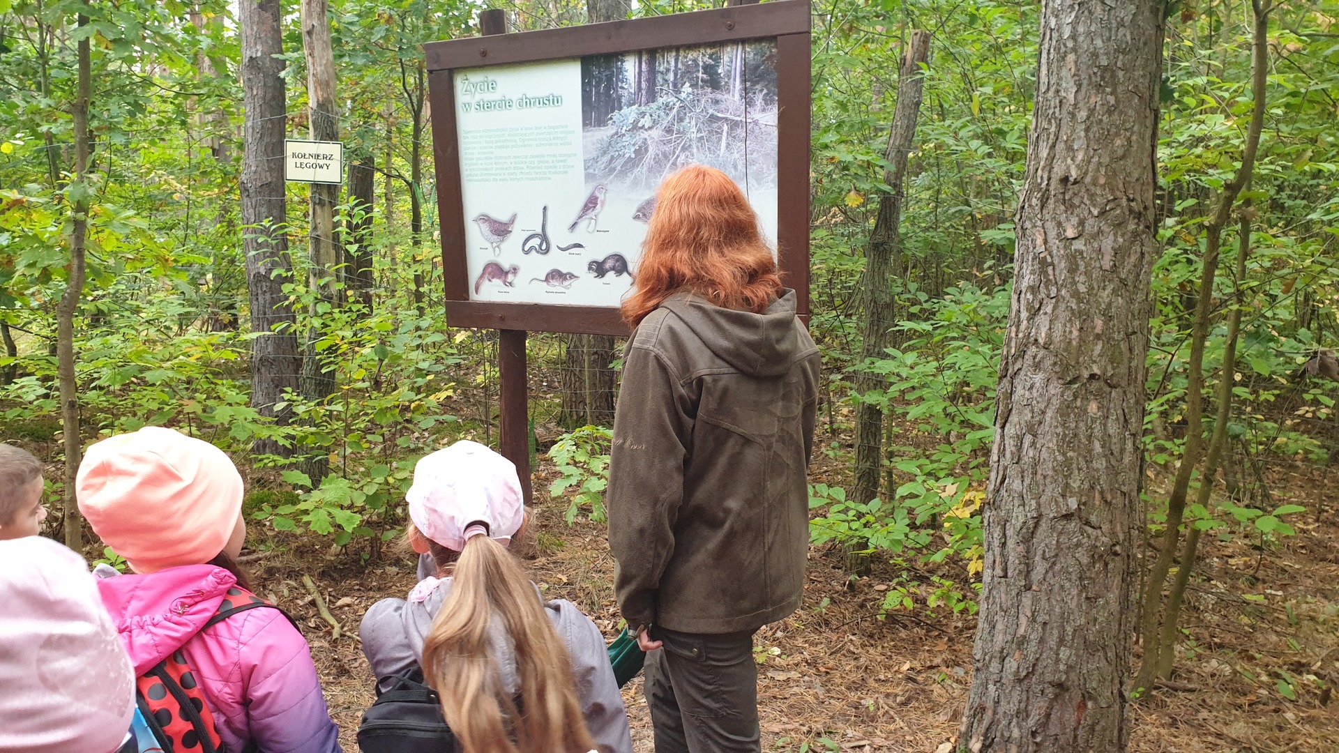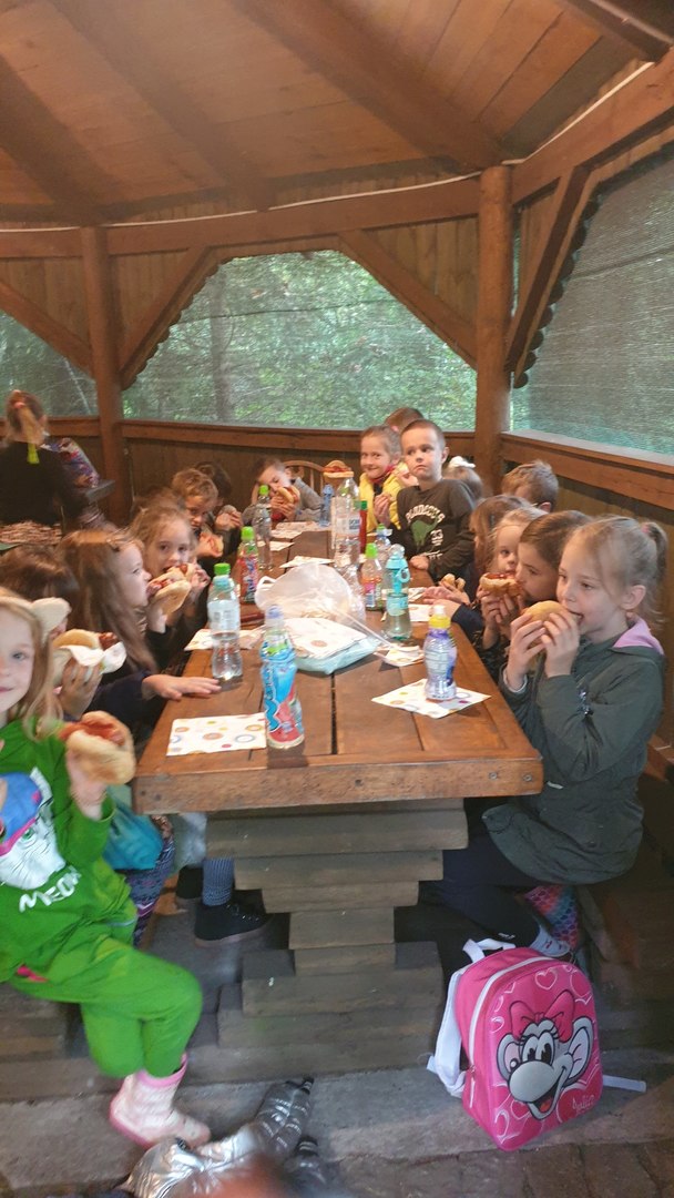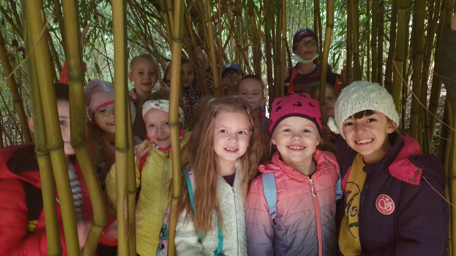Po niezwykle urokliwym miejscu oprowadzał uczniów pracownik Nadleśnictwa Rzepin. Zgłębiając wiedzę dotyczącą zwierząt leśnych, mogliśmy podziwiać liczne żeremie i tamy bobrów, karmić dziki, udowadniając tym samym, że dzik wcale nie jest taki dziki i taki zły jak opisywał J. Brzechwa. Kolejnym etapem wycieczki była wizyta w ogrodzie dendrologicznym, który przywitał dzieci pięknem jesiennych barw i niezliczonymi okazami różnorodnych gatunków drzew i roślin. Uczniowie mieli możliwość poczuć się jak w „tropikach ”, przedzierając się przez las bambusowy w drodze do bardzo okazałego pomnika przyrody, którym był 700 letni dąb „Piast”. Mali poszukiwacze przygód mogli na zakończenie wyprawy upiec kiełbaski na grillu.