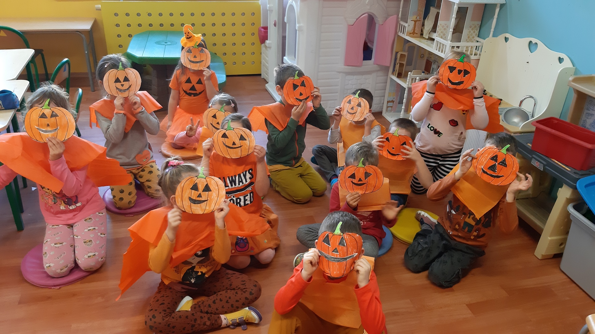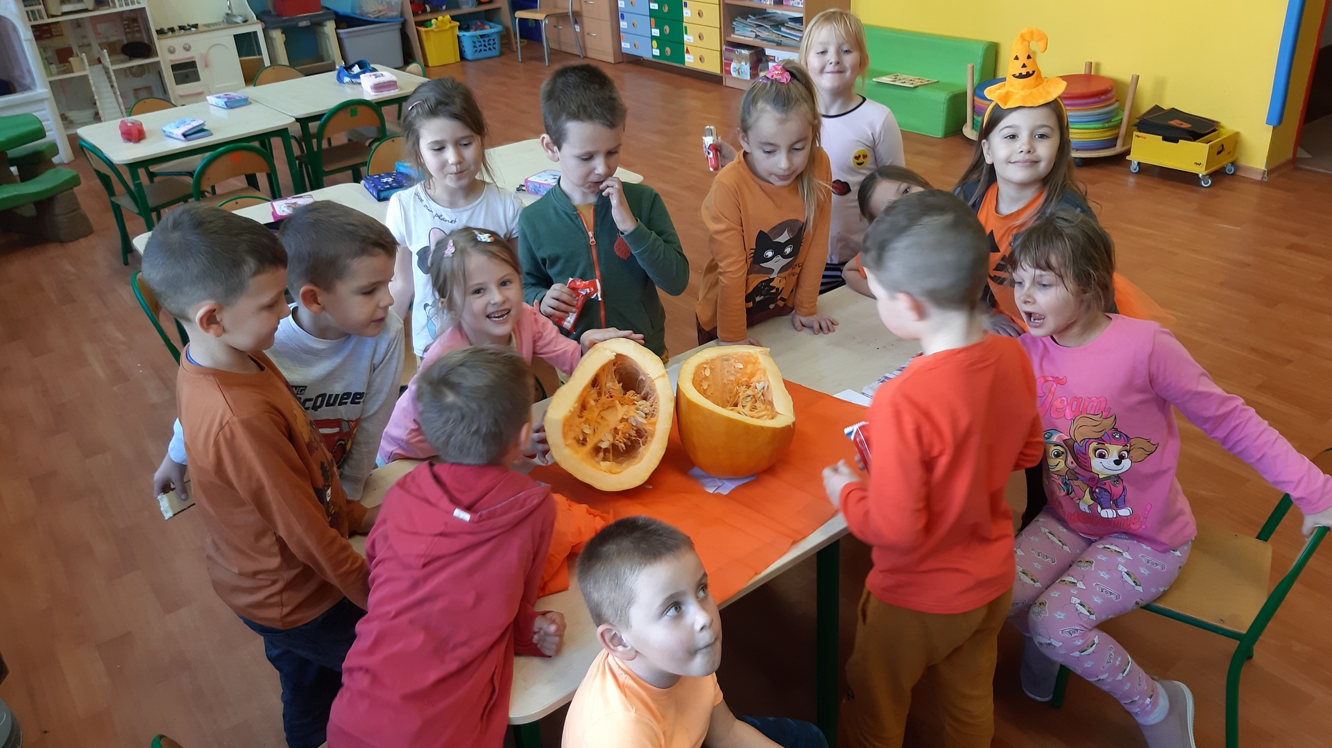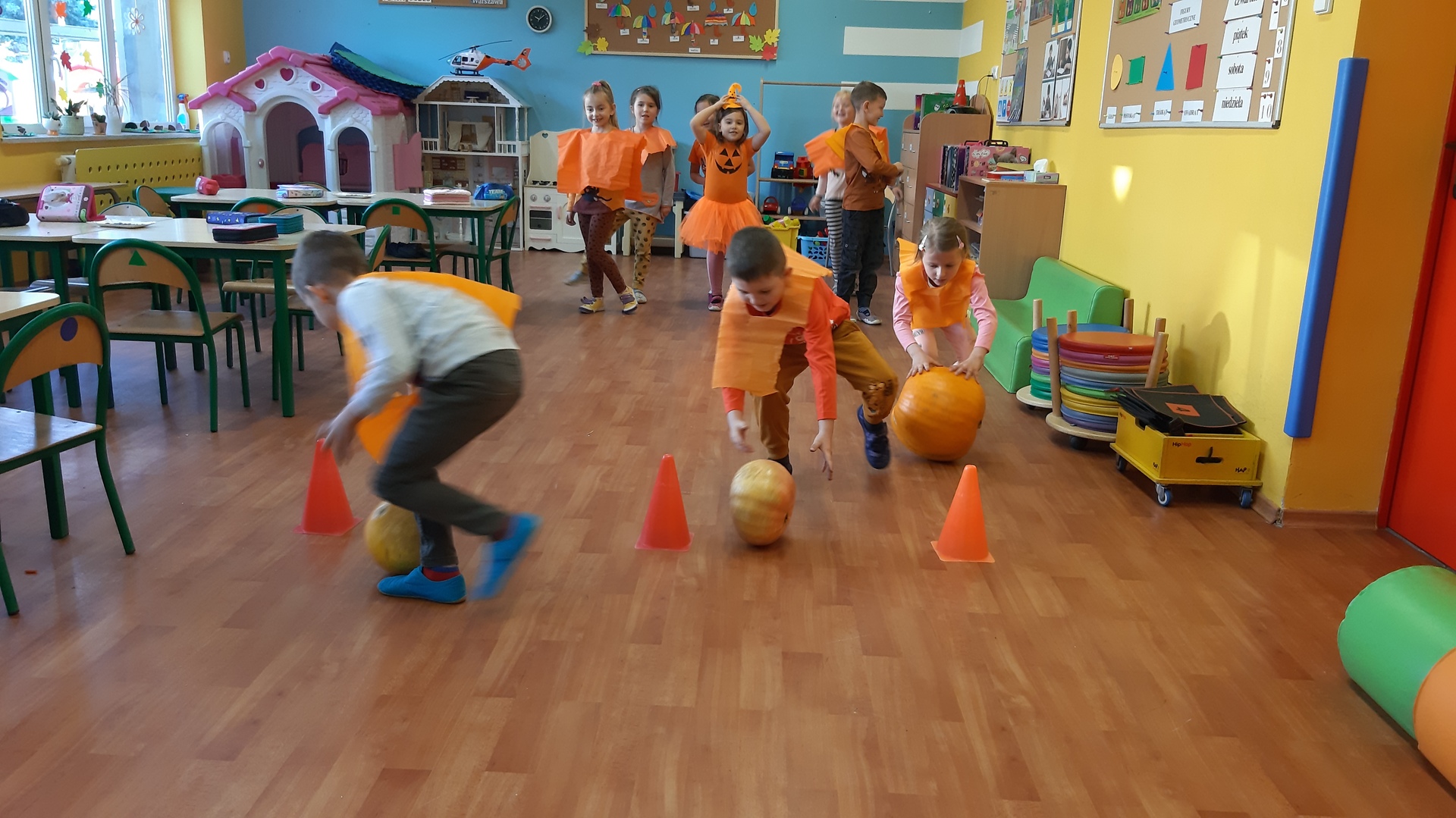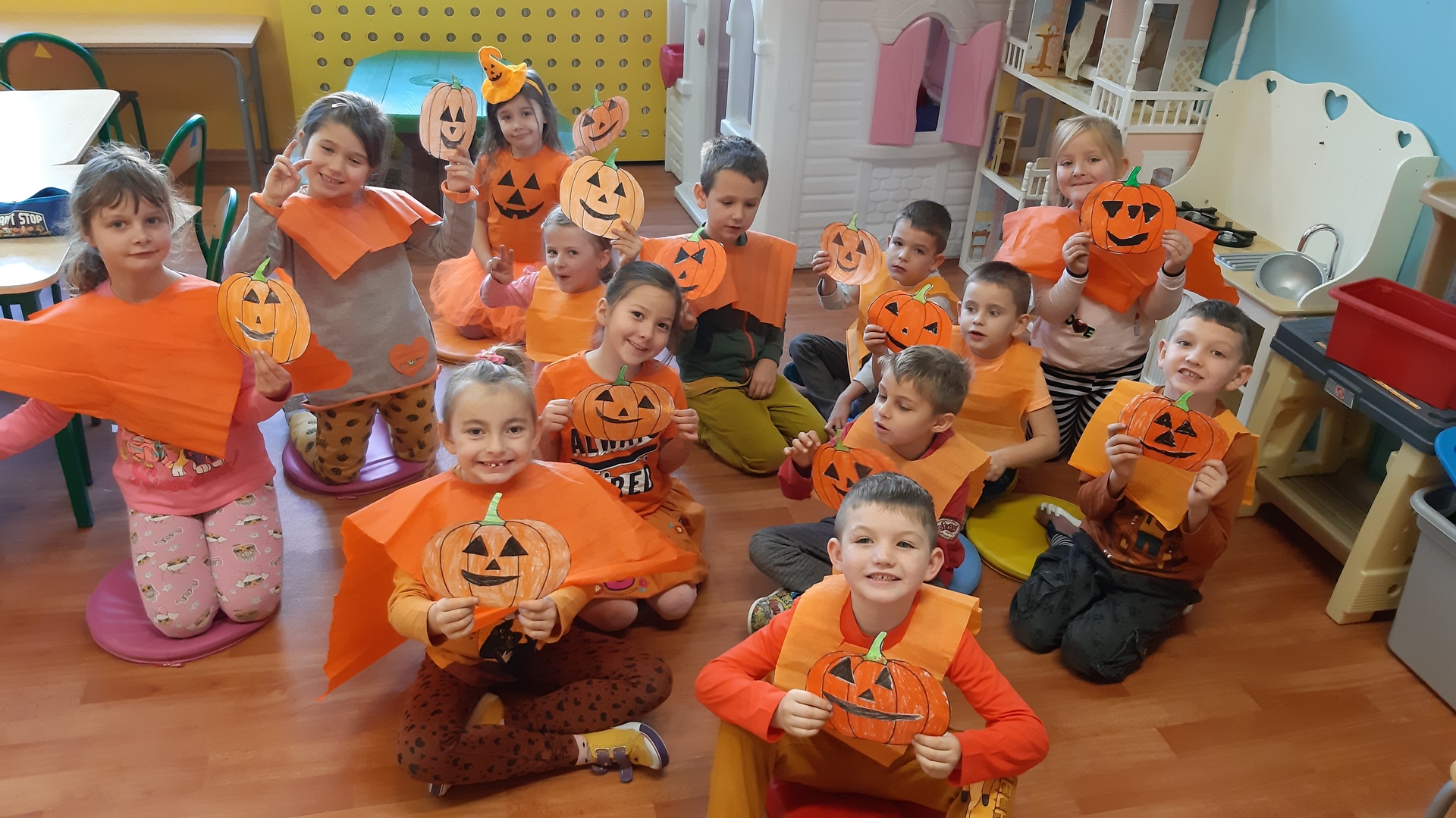 29 listopada w klasie 0A i 0B obchodziliśmy Dzień Dyni. Tego dnia nasze pracownie przypominały grządki, na których pojawiły się pomarańczowe dynie. Dzieci dowiedziały się jakim " wszechstronnym" warzywem jest dynia. Poznały różne walory dyni - kształt, kolor, wielkość. Smakowały warzywo i jego pestki. Okazało się, że dynia może też służyć jako sprzęt sportowy - była " piłką" do toczenia i przeszkodą w slalomie, a dyniowe, uśmiechnięte buźki wykonane przez dzieci, są ozdobą szkolnego korytarza. To był miły i pełen dyniowych wrażeń dzień.