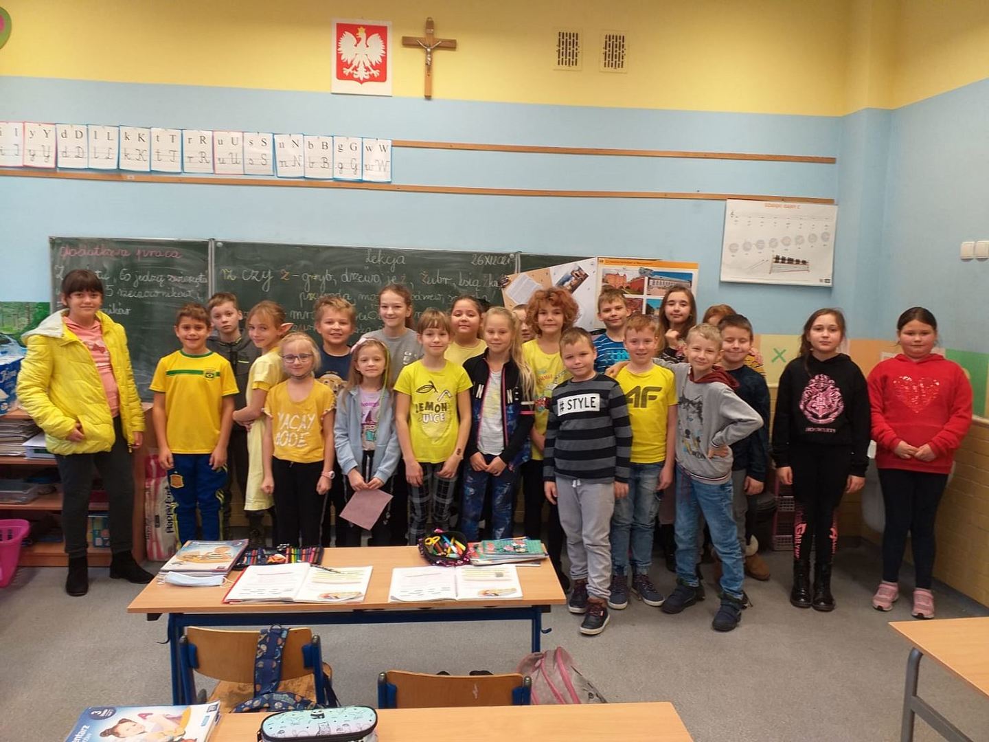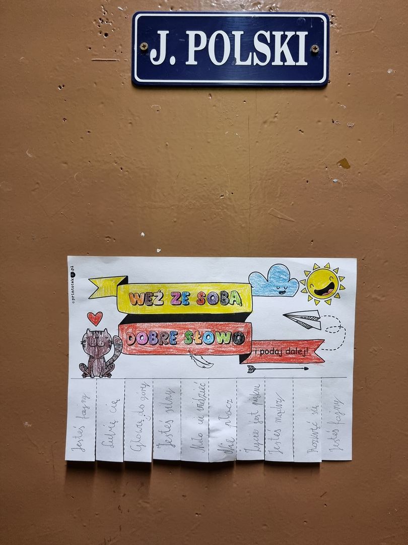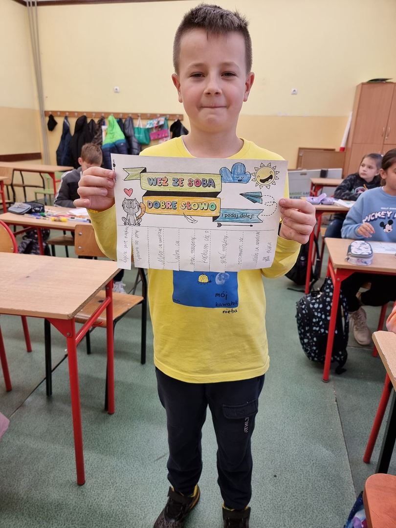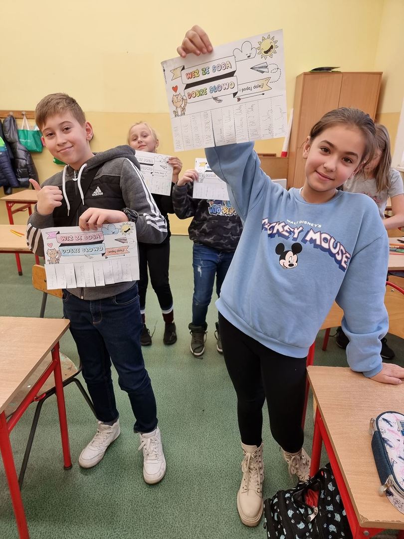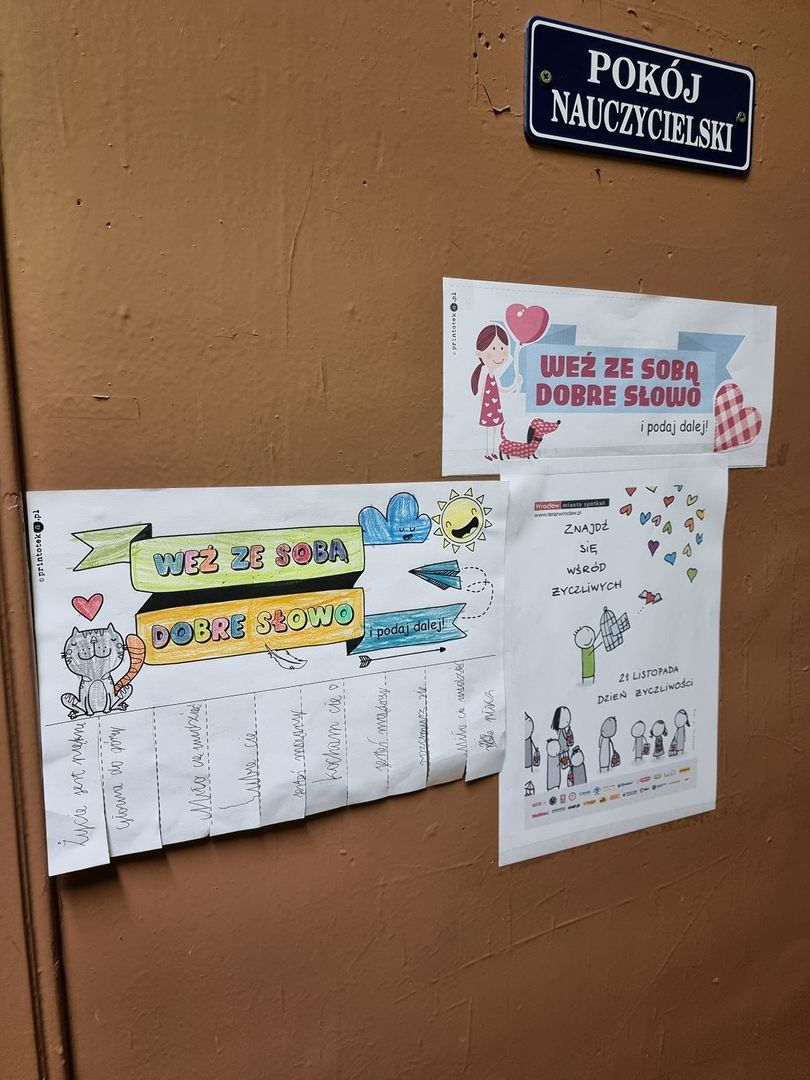 Tydzień od 22.11 do 26.11 został ogłoszony Tygodniem Życzliwości, a to wszystko z racji Dnia Życzliwości, który wypada 21.11. Uczniowie mieli okazję poczęstować się miłym słowem oraz poznać przepis na życzliwość. Później w czasie lekcji wychowawczych częstowali innych dobrym słowem. Uczniowie mieli również możliwość wysłania za pomocą „szkolnej poczty” pozdrowienia dla kolegów i koleżanek. Wystarczyło wrzucić do specjalnej skrzynki własnoręcznie wykonaną kartkę. Powstało wiele ciekawych prac i przekazano wiele uprzejmości. Jednego dnia wszyscy przyszli do szkoły ubrani na żółto, gdyż jest to kolor życzliwości, szczęścia i radości. Pamiętajmy, że życzliwość w codziennych sytuacjach nic nas nie kosztuje, a może dać drugiej osobie dużo radości.