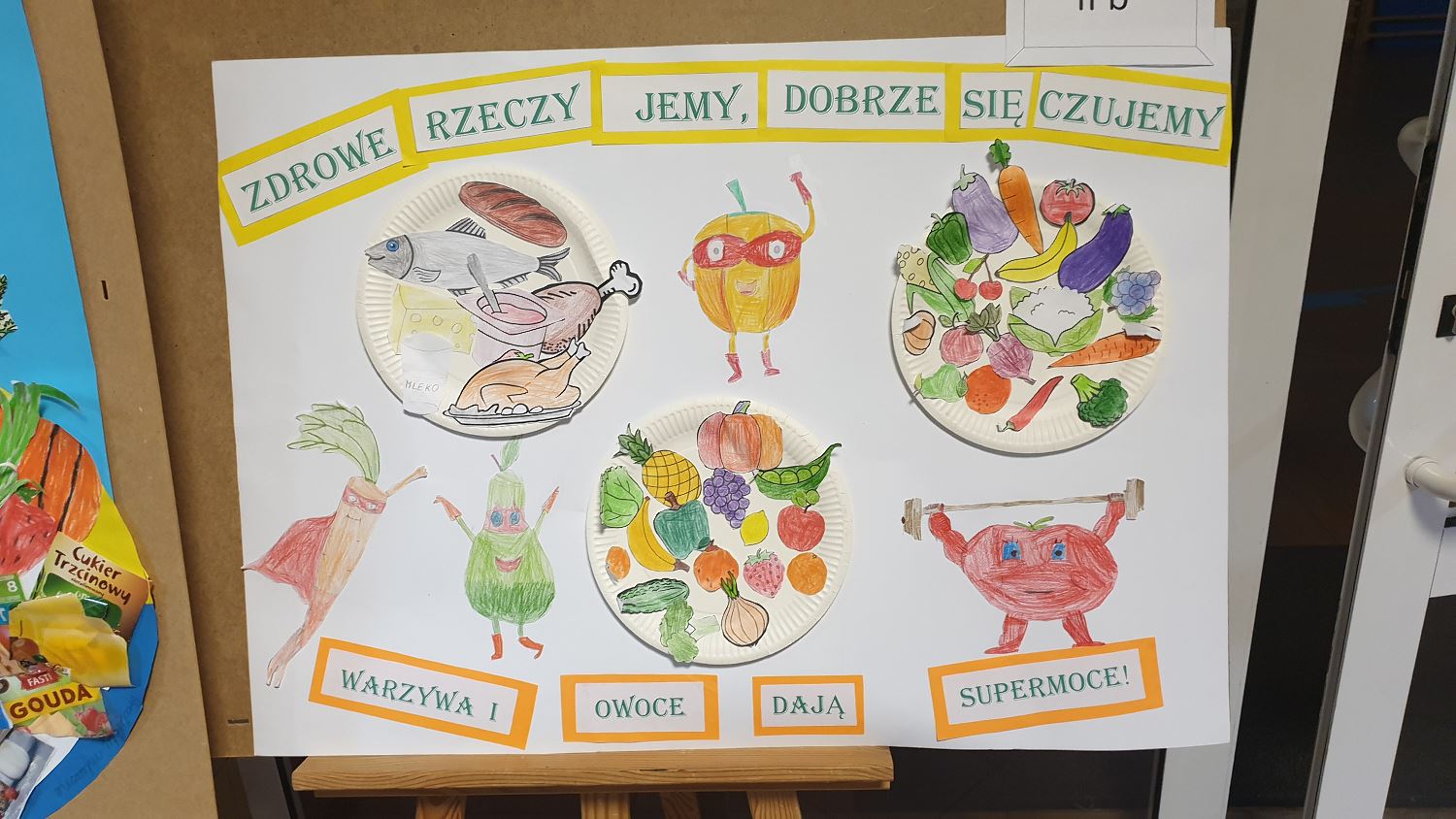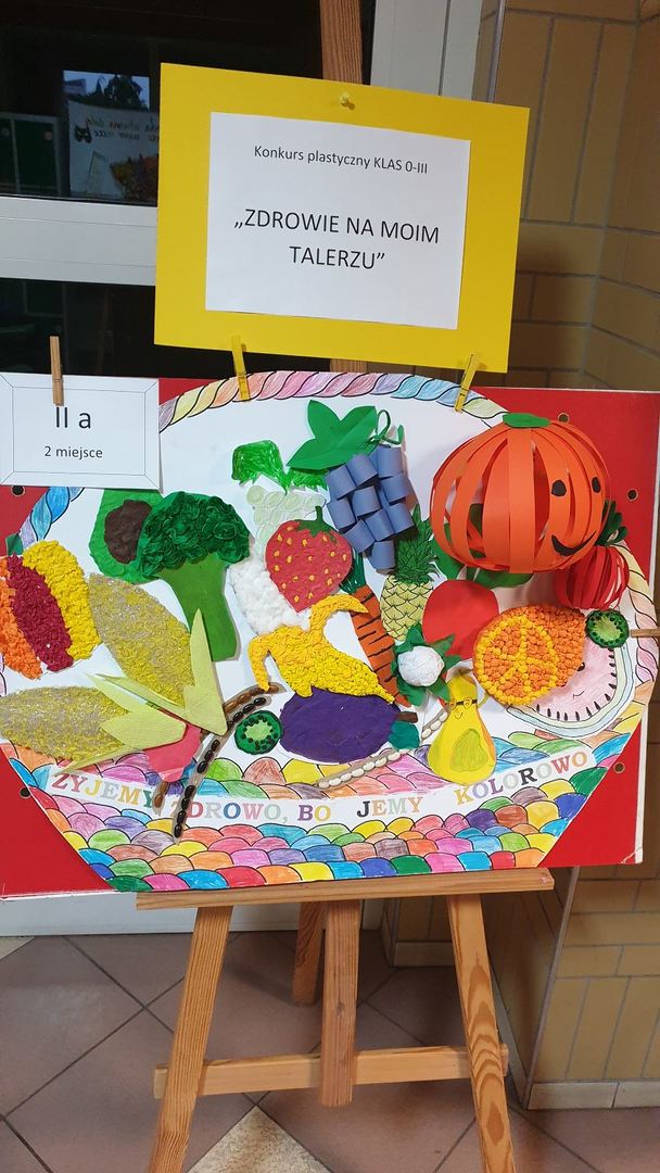 W ramach innowacji „Z ekologią na ty” odbył się konkurs „Zdrowie na moim talerzu”, którego celem była popularyzacja zdrowych nawyków żywieniowych, a co za tym idzie - codzienna dbałość o nasze zdrowie. Zadanie konkursowe polegało na przygotowaniu plakatu zachęcającego do zdrowego odżywiania się. Jury w składzie: wicedyrektor p. Krystyna Trzeciak, p. Alicja Korbus oraz p. Anna Molsa oceniało przede wszystkim zgodność zgłoszonych do konkursu prac z jego regulaminem oraz wkład pracy uczniów włożony w wykonanie plakatu. Do udziału w konkursie zgłosiło się dziewięć klas od klas 0-3.