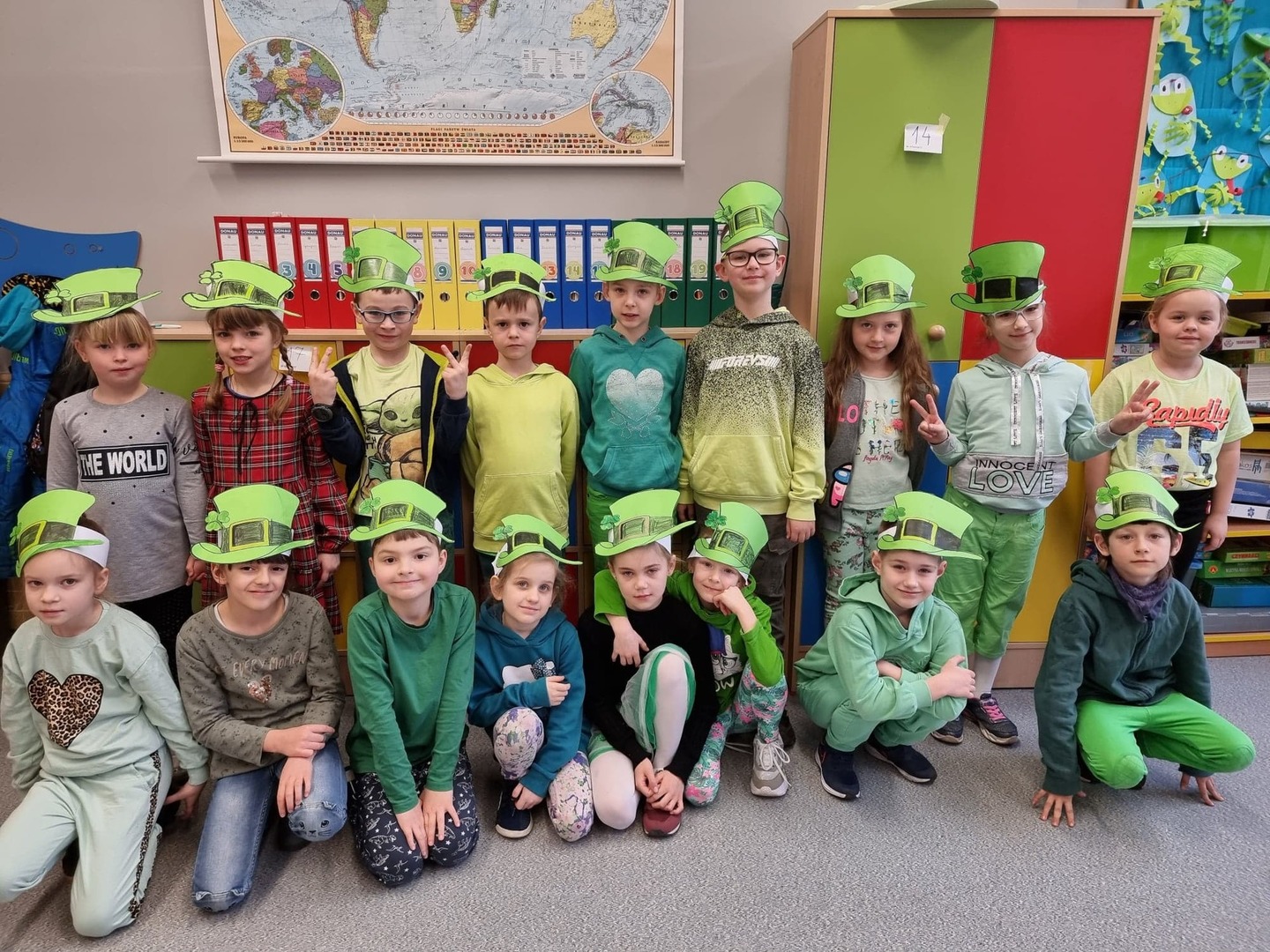 Kiedy wiosna jest tuż, tuż za rogiem i wyczuć już można nieśmiałe oznaki zmiany pór roku, Irlandczycy mają swoje święto narodowe. Obchody Dnia Świętego Patryka wykraczają jednak daleko poza granice Irlandii i 17 marca również dotarły do naszej szkoły. Z Dniem Świętego Patryka słusznie kojarzy się kolor zielony - to narodowa barwa Irlandii, która nie tylko nawiązuje do krajobrazu wyspy, ale także symbolizuje koniczynę, którą przypisuje się według tradycji św. Patrykowi. 17 marca ośniańscy uczniowie również ubrali się na zielono, a figlarny Leprechaun ukrył dla nich garniec wypełniony słodkościami. Ponadto nie mogło zabraknąć konkursu sprawdzającego wiedzę o Irlandii i Dniu Św. Patryka. A oto zwycięzcy:
