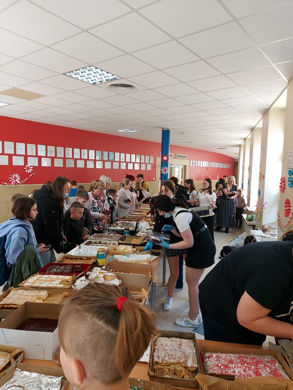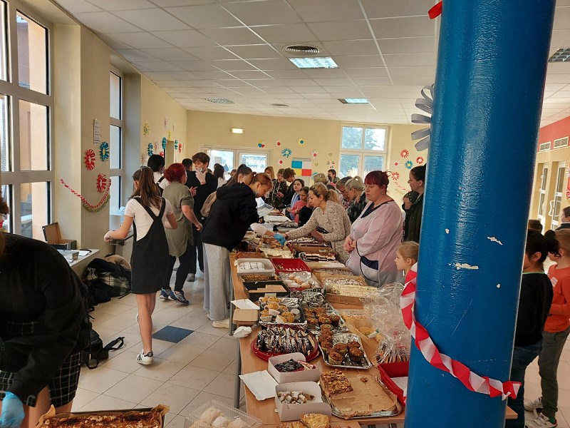 Czekoladowe babeczki z kolorowymi cukierkami, jabłeczniki, serniki i mnóstwo innych przepysznych słodkości można było zakupić w czasie charytatywnego kiermaszu zorganizowanego w marcu 2022 r. przez Szkołę Podstawową w Ośnie Lubuskim wraz z Radą Rodziców. Oprócz ciast w sprzedaży był również domowy chlebek upieczony przez panią Anię. Dochód z kiermaszu w wysokości 5 112,10 zł zostanie przeznaczony m.in. na wyprawki szkolne dla dzieci z Ukrainy. W organizację wydarzenia całym sercem zaangażowali się szczególnie uczniowie klas 8. Zadbali nie tylko o piękne dekoracje na korytarzu, ale również o świetną atmosferę.