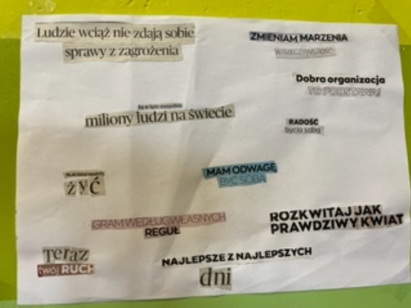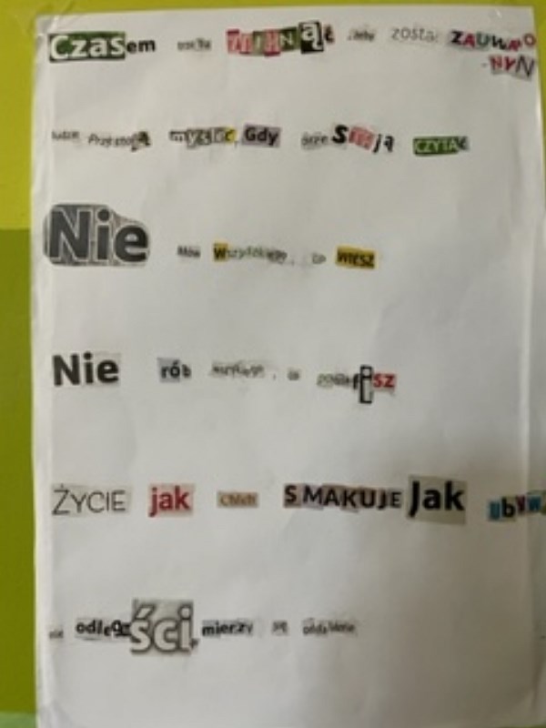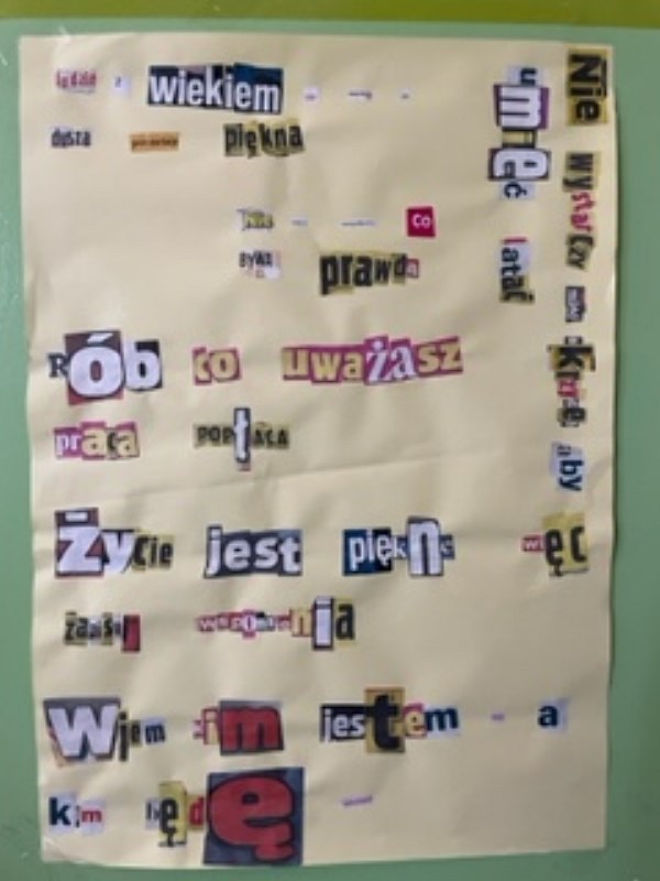 Loesje, czyli kreatywne pisanie, a skoro pisanie, to głównie myślenie. Niedawno na lekcjach polskiego uczniowie klasy 7 b mierzyli się z aforyzmami Stanisława Jerzego Leca pochodzącymi z tomiku „ Myśli nieuczesane”. Dowiedzieli się, czym są sentencje, złote myśli, motta, kiedy ich używamy, czemu służą. Odczytywali dosłowne i przenośne sensy aforyzmów przytoczonych w podręczniku. Poznali także przykłady prac Małgorzaty Koniecznej zebranych w tomiku „Wycinki w termosie” tworzonych z wycinanych fragmentów gazet . Usłyszeli również o Loesje, czyli kreatywnym pisaniu wymyślonym przez Loesje [luszje] pełną energii, wiecznie młodą duchem Holenderkę. Użyczyła ona imienia grupie osób, które wierzą, że plakaty mogą spowodować rewolucję, a hasła nim podpisane odzwierciedlają to optymistyczne podejście.