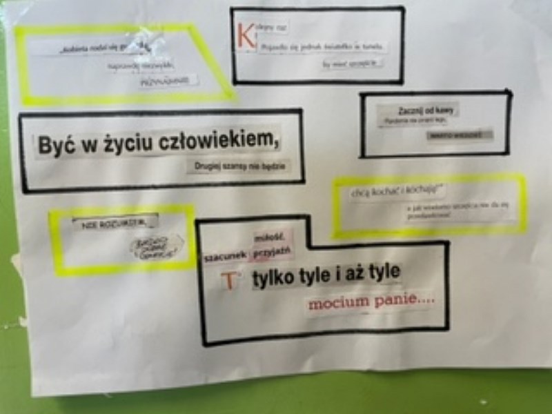 Po zapoznaniu się z tymi różnymi formami swoistego komentowania świata siódmoklasiści sami spróbowali stworzyć własne „Loesje” czy „wycinki” i niektóre są naprawdę znakomite. Oceńcie sami! (Prace można przeczytać na korytarzu koło gabinetu 38.)Kto wie, może młodzież zachęcona tym literackim spotkaniem nie poprzestanie na jednym zadaniu, zacznie wymyślać następne teksty i ….kiedyś kolejne okolenia uczniów będą się uczyły o aforyzmach na podstawie twórczości któregoś z naszych absolwentów.