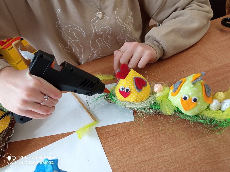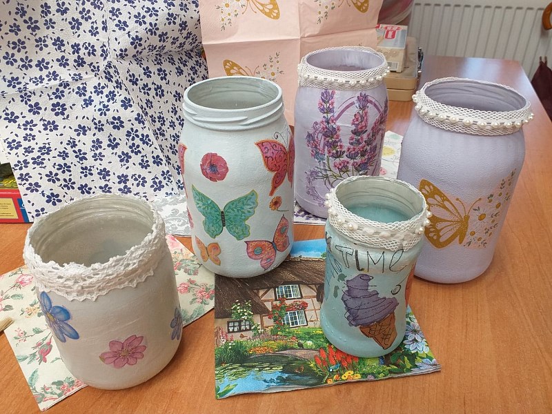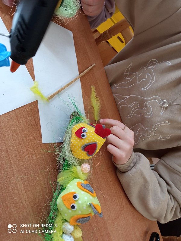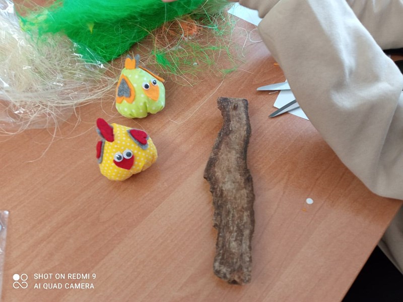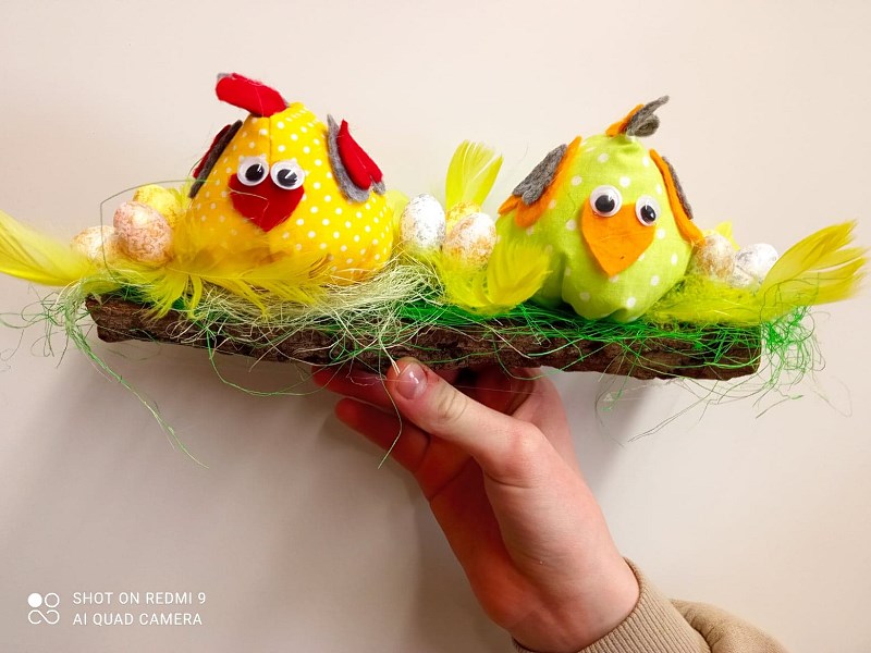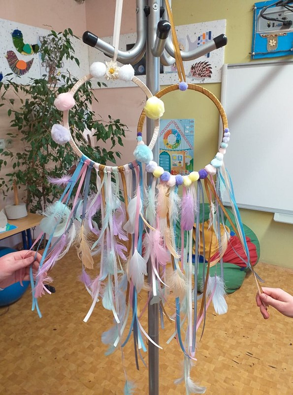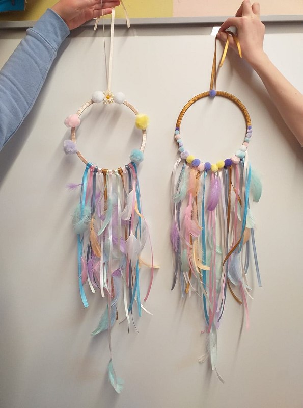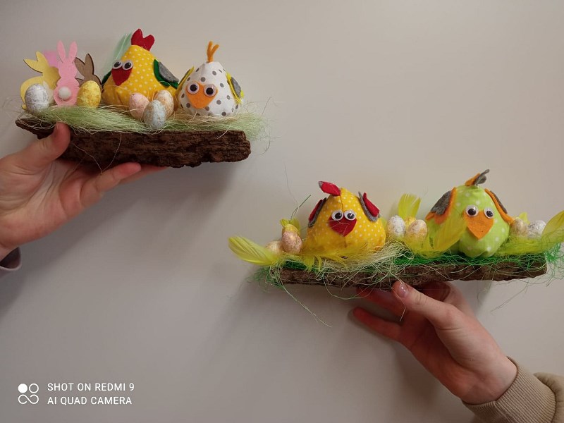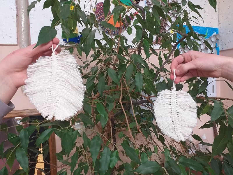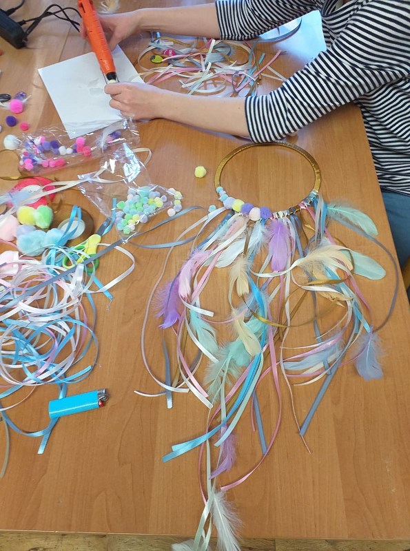 Co tydzień wtorkowe popołudnie to czas na rękodzieło i arteterapię. W trakcie zajęć uczestniczki rozwijają swoje umiejętności manualne, kreatywność, wyobraźnię. Poznają nowe techniki wykonania tj. elementy decoupage, makramy. Tak powstały lampiony, łapacze snów czy cudowne listki. Pierwszy raz szyły na maszynie i świetnie sobie poradziły. Uszyły wielkanocne zające, świąteczne kurki, które wykorzystały do wykonania stroika. Wszystkie wykonane prace, są ozdoba ich pokoju lub stanowią prezent dla najbliższych.