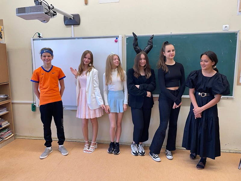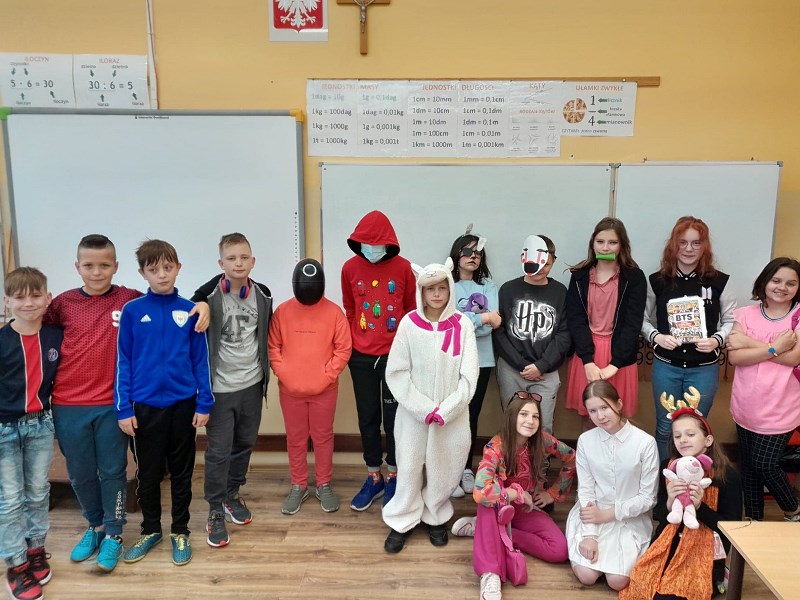 Samorząd uczniowski ogłosił dzień 1.06.2022r. DNIEM IDOLA. Tego dnia uczniowie przyszli do szkoły przebrani za swoich idoli – tych z dzieciństwa bądź tych obecnych. Na szkolnych korytarzach mogliśmy spotkać wielu znanych sportowców takich jak Robert Lewandowski czy Lionel Messi. Nie zabrakło oczywiście fanów postaci fikcyjnych z bajek, filmów, gier i seriali, np. Diaboliny, facetów w czerni czy Elzy. Swym blaskiem oślepiały nas także piękne Barbie czy utalentowani piosenkarze jak Sanah, The Weeknd czy Harry Styles. W tym wyjątkowym dniu oczywiście uczniowie mogli przyjść do szkoły bez książek, a w czasie lekcji grali w gry planszowe lub aktywnie spędzali czas na świeżym powietrzu.