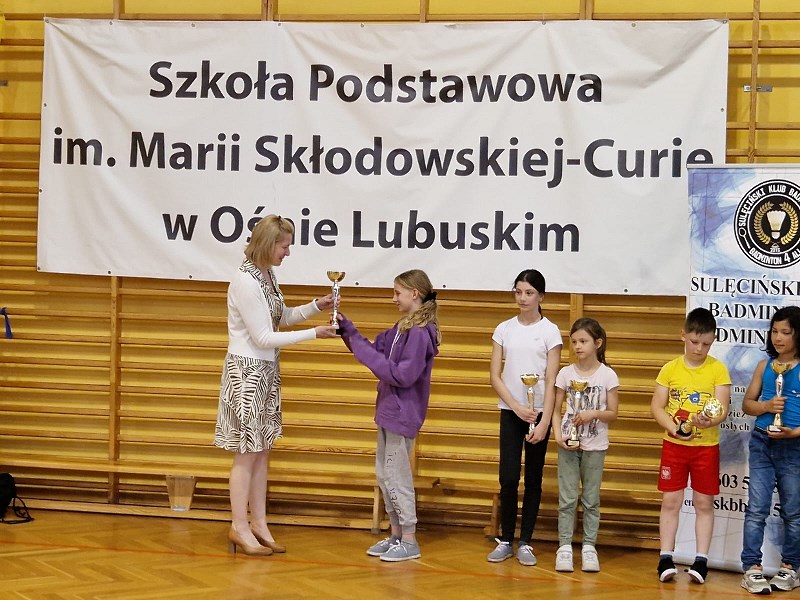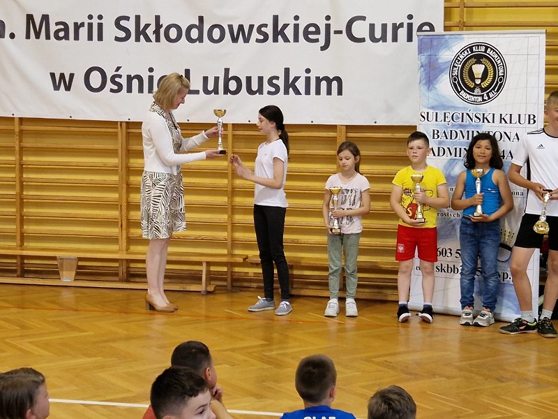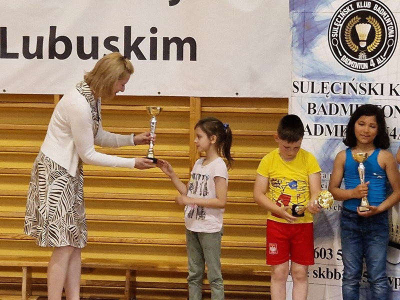 Na zakończenie zawodów p. Robert Aleksandrowicz, Prezes Sulęcińskiego Klubu Badmintona, przekazał na rzecz szkoły rakietki oraz lotki. Po dzisiejszym dniu z pewnością wzrośnie zainteresowanie badmintonem wśród uczniów. Niektórzy z nich zapowiedzieli, że już zaczną trenować do następnych zawodów.