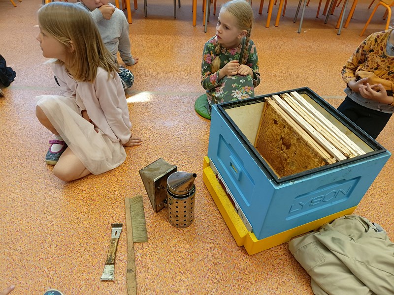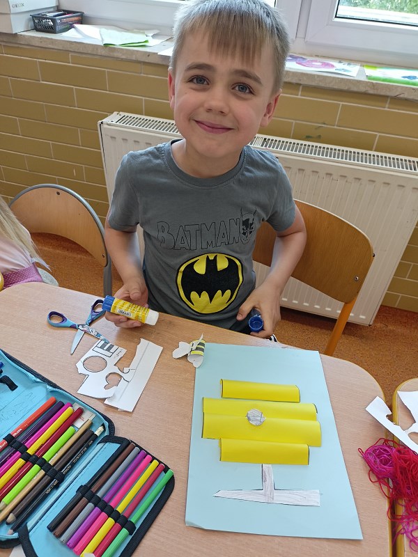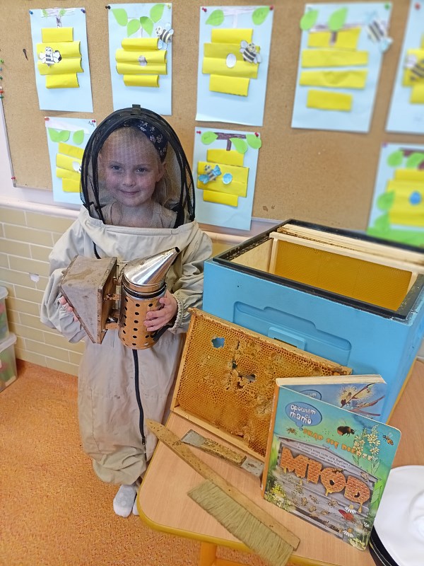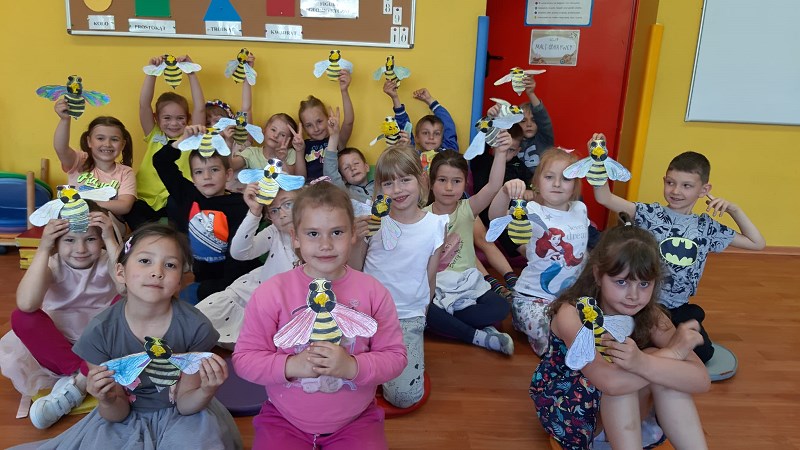 20 maja jest Dniem Pszczoły. Tego dnia dzieci z oddziałów przedszkolnych poznały pojęcie pasieki ,specyfikę pracy pszczelarza , zobaczyły i nawet ubrały się w jego kombinezon. Mogły obejrzeć ramki z węzą, odymiarkę. Przejrzały cały ul i próbowały rozróżnić matkę pszczelą od zwykłej robotnicy. Zapoznały się z terminem matecznika i mogły obejrzeć specyficzny taniec pszczół. Miały okazję posłuchać utworu Nikołaja Rimskiego-Korsakowa "Lot trzmiela". Wskazywaliśmy różnice pomiędzy pszczołą, osa i trzmielem. Zabawa z chustą Klanzy – „Pszczoły w sadzie” pozwoliła dzieciom utrwalić najważniejsze informacje z zajęć.