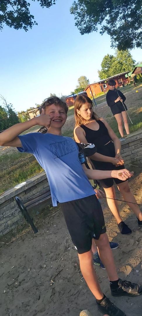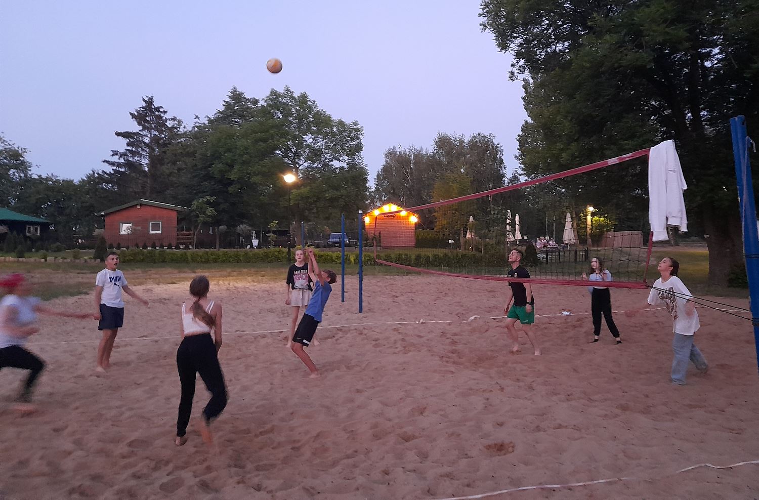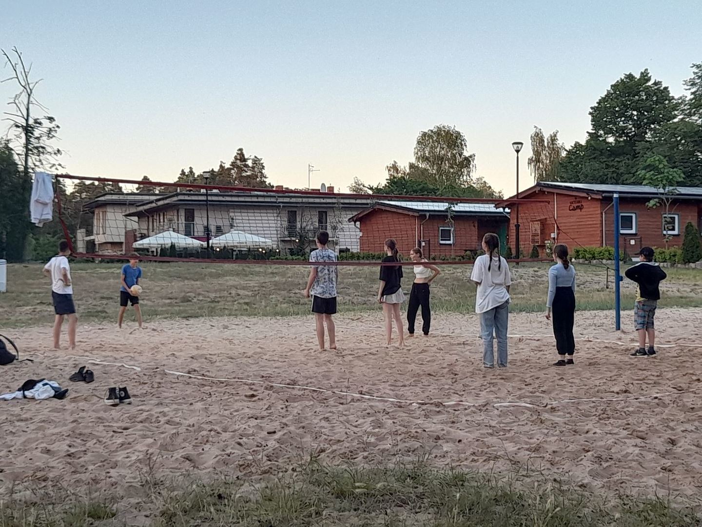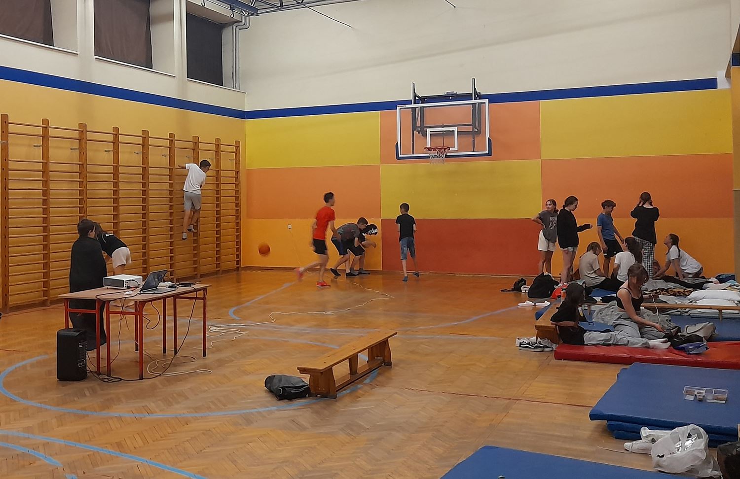 W dniu 10 czerwca 2022r klasa VII A uczestniczyła w tzw. „nocowaniu w szkole”. Zaczęliśmy od ogniska nad jeziorem Reczynek i pieczenia kiełbasek. Potem, aby jedzonko „dobrze się ułożyło” większość grupy uprawiała konkurencje sportowe na siłowni, spacerowała lub grała w piłkę siatkową i koszykówkę pod czujnym okiem pana Łukasza. Kiedy słoneczko skryło się za horyzontem nastąpił moment powrotu do szkoły i rozpoczęła się właściwa, długo wyczekiwana część imprezy. Uczniowie mieli okazję obejrzenia szeregu filmów, a w przerwach ćwiczyli elementy gry i rzuty do kosza. Jak w prawdziwym kinie można było pochrupać popcorn, a zamiast pepsi (która jak wiadomo jest znakomitym rozpuszczalnikiem i odrdzewiaczem) popijaliśmy dużo zdrowszą lemoniadę pani Uli. Kilkoro uczestników grało zawzięcie w „Mafię”, ćwicząc przy tym logiczne myślenie. Przy okazji można było ze zdziwieniem zaobserwować, jak wcześnie wschodzi Słońce (wtedy kiedy najczęściej przewracamy się na drugi bok). Imprezę możemy uznać za bardzo udaną, myślę, że wielu uczniom (jeśli nie wszystkim) bardziej podobały się nocne zajęcia niż dzienne. Dziękuję serdecznie w imieniu Dzieci i swoim za pomoc, bez której ta akcja nie byłaby taka udana: Rodzicom z trójki klasowej, pani Urszuli Urbaniak i panu Łukaszowi Wit.