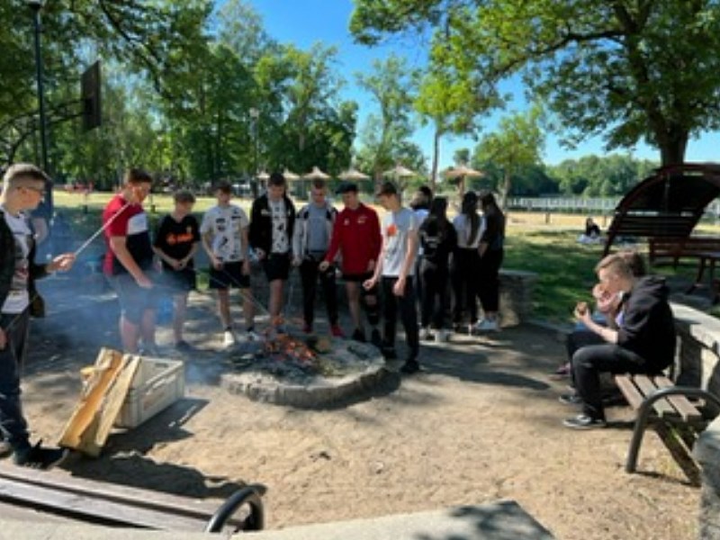 Z dziecka nigdy się nie wyrasta, jest się nim zawsze. Jeśli ktoś dorasta, to wiele traci, o czym można się przekonać, śledząc przygody sławnego Piotrusia Pana wymyślonego przez Jamesa Matthew Barriego. Idąc tym tropem, uczniowie klasy 8 c trzeciego czerwca, czyli tuż po Dniu Dziecka bardzo ochoczo przystąpili do świętowania. Z wydatną pomocą rodziców zorganizowali świąteczny piknik nad jeziorem Reczynek. Jak na piknikowe spotkanie przystało, w wyznaczonym miejscu czekało na ósmoklasistów wspaniałe ognisko. Można na nim było upiec pyszne kiełbaski albo podgrzać i tak gorące serca. Żeby uprzyjemnić sobie czas młodzież wzięła ze sobą koce, gry planszowe a także piłki do siatkówki i koszykówki. Każdy mógł sobie wybrać, w jaki sposób spędzi ten czas. Wielu skorzystało z okazji do spaceru oraz podziwiania piękna ośniańskiej przyrody i wybrało się na spacer wkoło jeziora z wychowawczynią Małgorzatą Soloch lub szkolnym pedagogiem Anną Molsą. Lubiący spokojniejszy tryb życia wylegiwali się na kocykach. A było po czym odpoczywać, bo troskliwe mamy poza kiełbaskami przygotowały także przepyszne słodkości: ciasto drożdżowe, pączusie –serusie i…….. eklery w formie łabędzi, które z jednej strony żal było zjadać, a z drugiej aż same "leciały do gabki". Pogoda sprzyjała i zabawom, i wypoczynkowi, a to wszystko scalaniu klasy, która już wkrótce będzie musiała się rozwiązać, ponieważ dobiega końca czas wspólnej edukacji. Jednak takie spotkania na długo zostają w pamięci i po latach na wspólnych spotkaniach właśnie o nich się opowiada. A to będą naprawdę miłe wspomnienia.