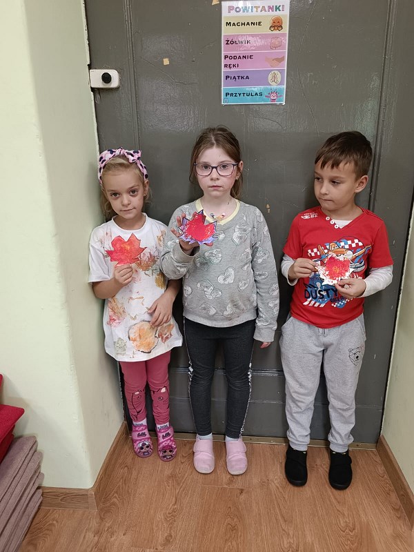 Dziś jesień przywitała nas piękną pogodą, a zebrane przez dzieci liście mieniły się w blasku słońca. Mamy nadzieję, że ciepła i kolorowa jesień pozostanie z nami na długo.