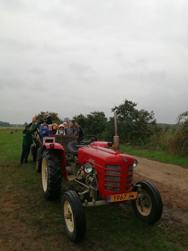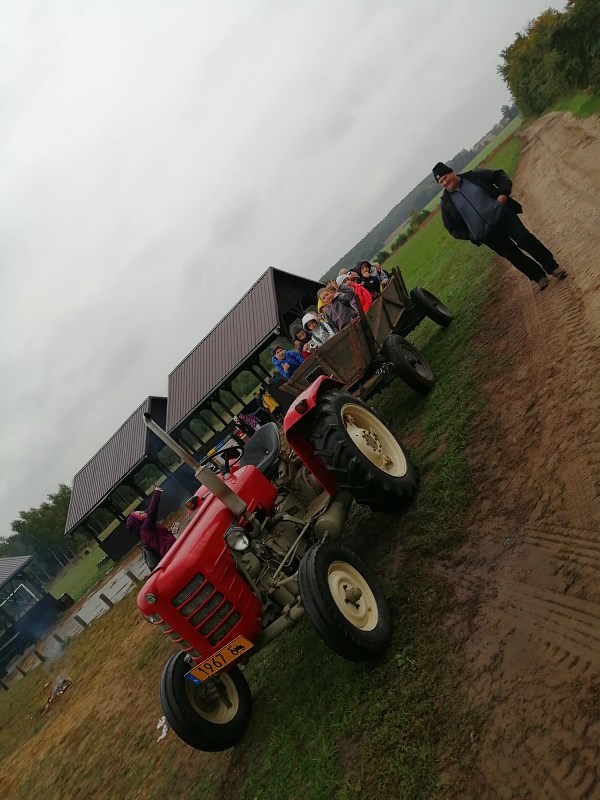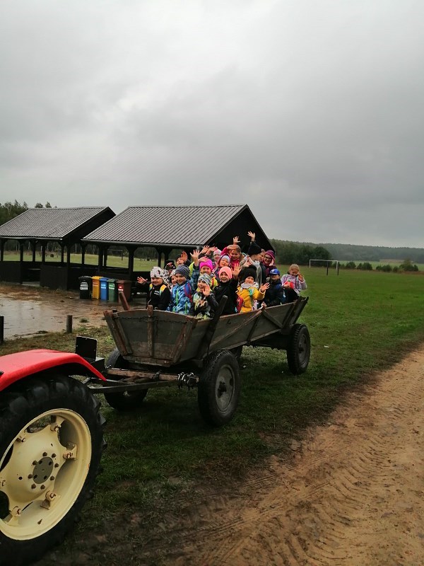 Uwieńczeniem całej zabawy było wspólne ognisko i pieczenie kiełbasek, a następnie przejażdżka zabytkowym wozem ciągniętym przez jeszcze starszy traktor. Po przyjeździe do gospodarstwa dzieci zwiedziły chłodnie, gdzie przechowywane są ziemniaki i oglądały maszyny rolnicze, które były używane w przeszłości.