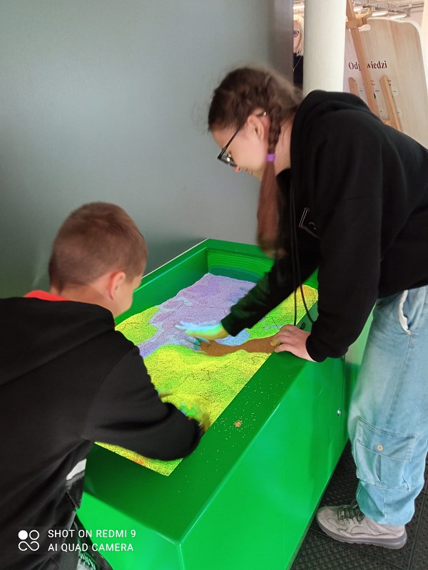 Kolejnym punktem wycieczki było Centrum Przyrodnicze Keplera . Uczniowie zobaczyli, jak rozkładają się ładunki elektryczne w kuli plazmowej, jak powstają wiatry i prądy morskie. Dużym powodzeniem cieszyło się doświadczenie- siła skoku oraz stanowisko prezentera pogody. Uczniowie mogli zobaczyć, na czym polega praca paleontologa i samodzielnie szukać szkieletów dinozaurów. Uczestniczyli w różnych doświadczeniach fizycznych i chemicznych.