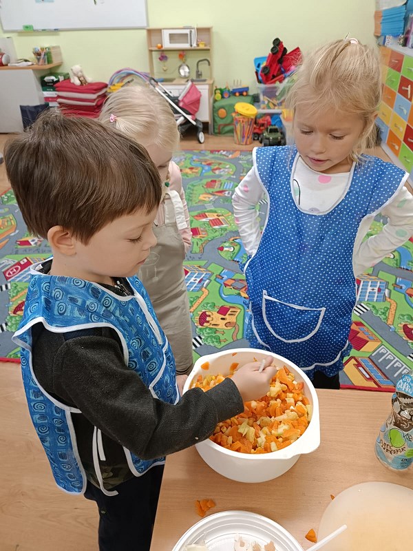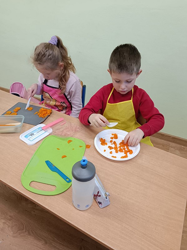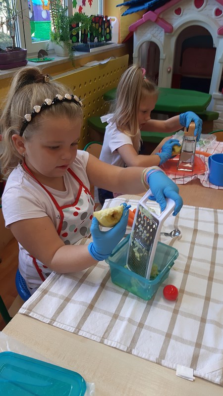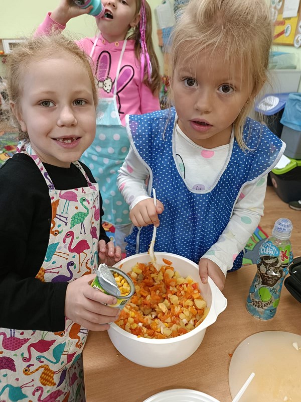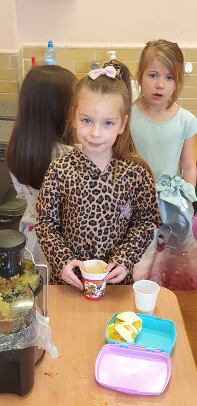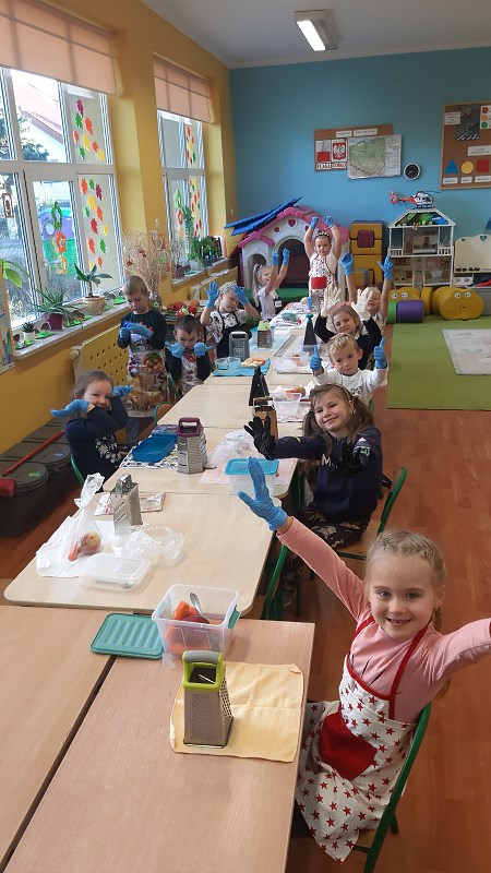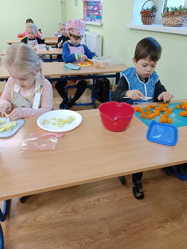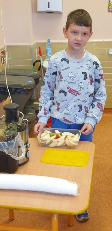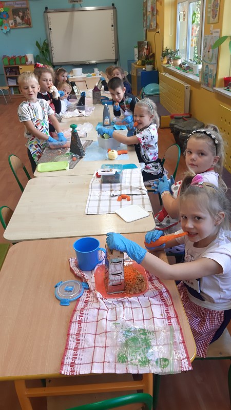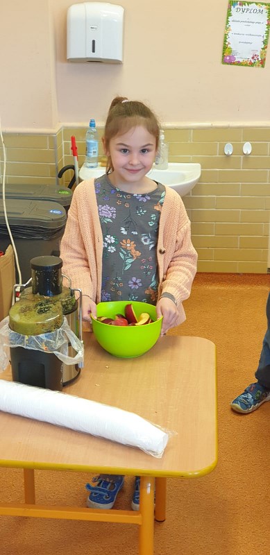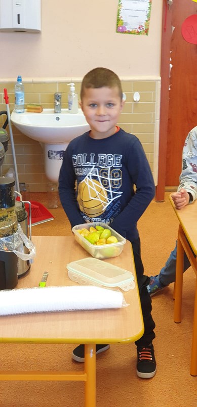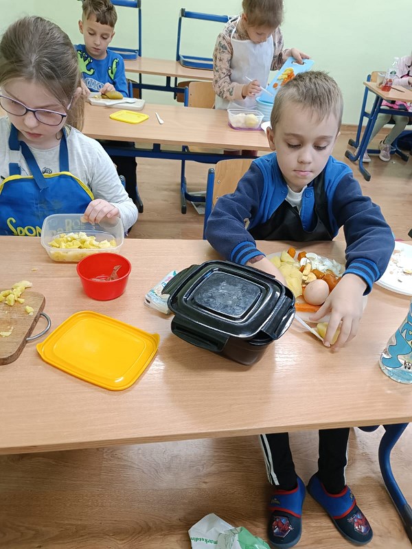 Surówki, sałatki, soczki - do wyboru, do koloru, dla każdego coś dobrego. Dzieci z oddziałów przedszkolnych z naszej szkoły poznały tajniki zdrowego odżywiania. Klasa 0a z Panią Eweliną robiła wieloowocowe soczki, które smakowały wybornie. Klasa 0b z Panią Anią robiła przepyszną sałatkę jarzynową - sałatka " paluszki lizać". Natomiast klasa 0c z Panią Lidką postanowiła przygotować aromatyczną surówkę z marchewek, jabłek i cytrynki - smak rewelacyjny. Oprócz wiedzy jaką dzieci zdobyły na temat wartości zdrowotnych i odżywczych warzyw i owoców, wszystkim podczas kulinarnych wyczynów towarzyszył super humorek, śmiech i satysfakcja z własnoręcznie wykonanych potraw. Takie zajęcia to przykład na to, że można zdobywać wiedzę poprzez zabawę. Niedługo znowu wyruszymy w kulinarną podróż, podróż do Krainy Smakołyków.