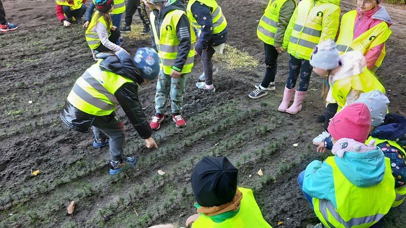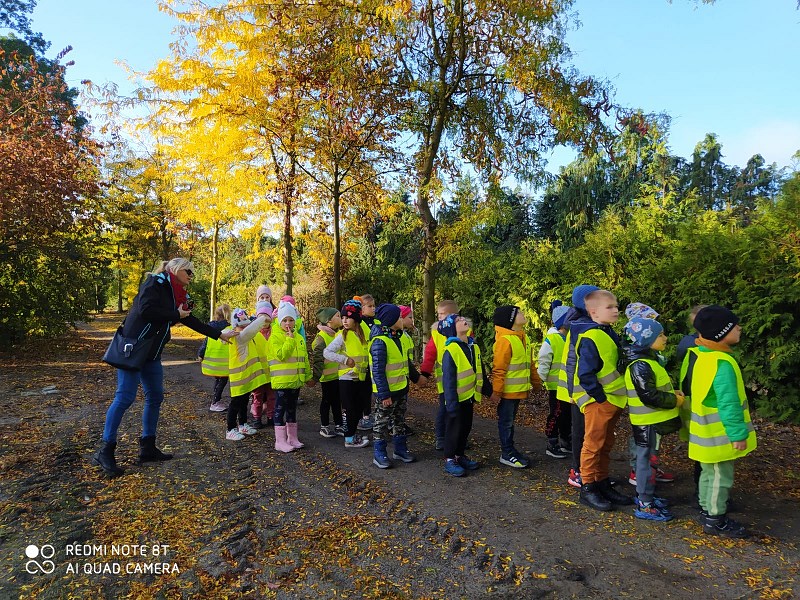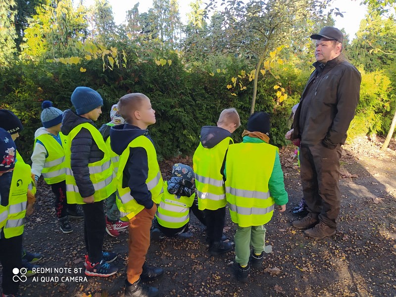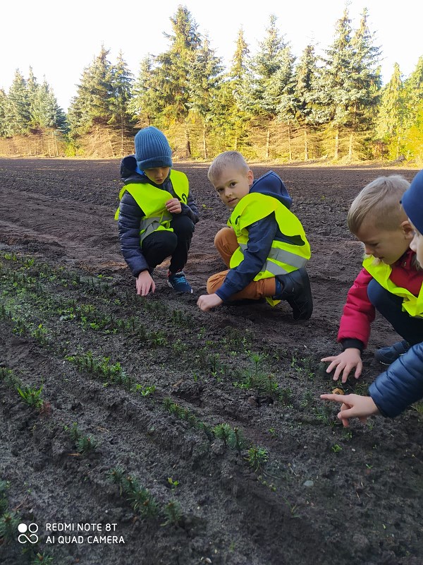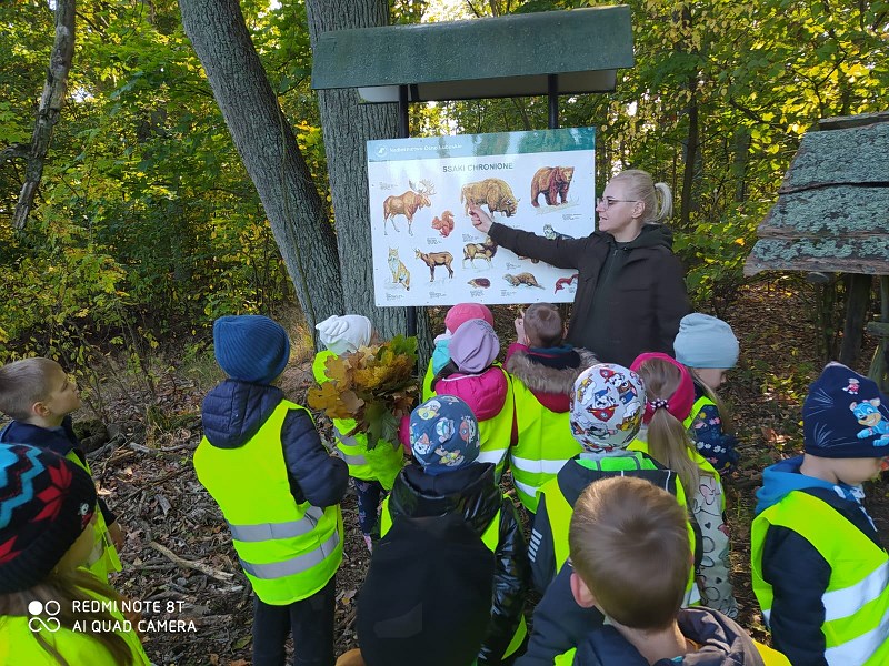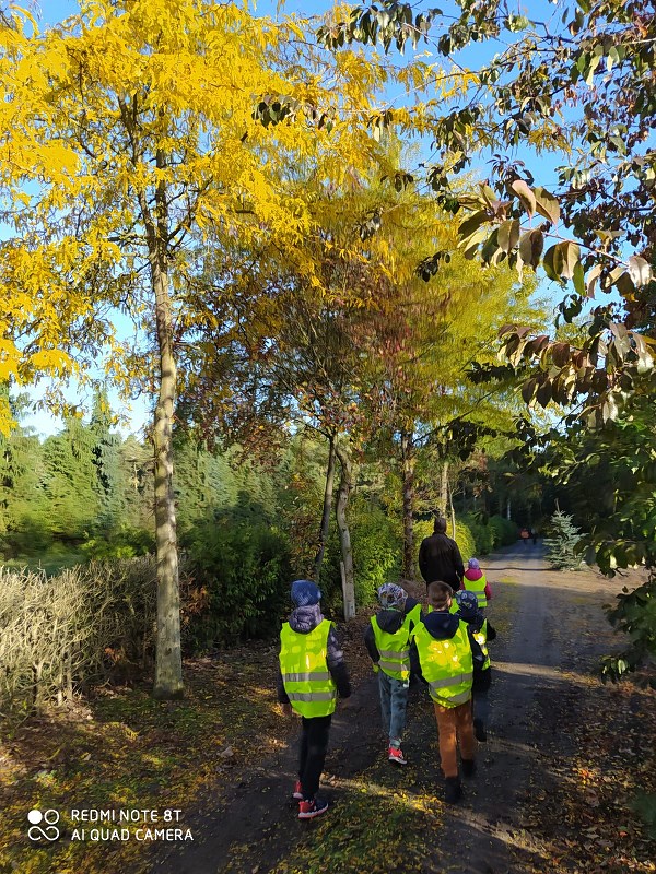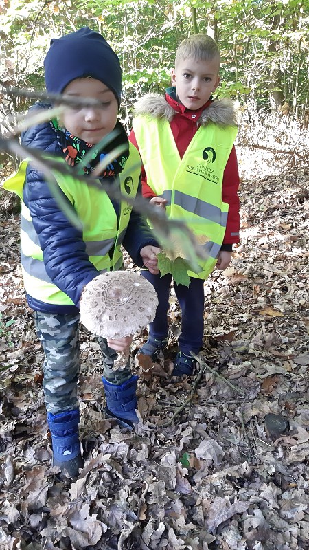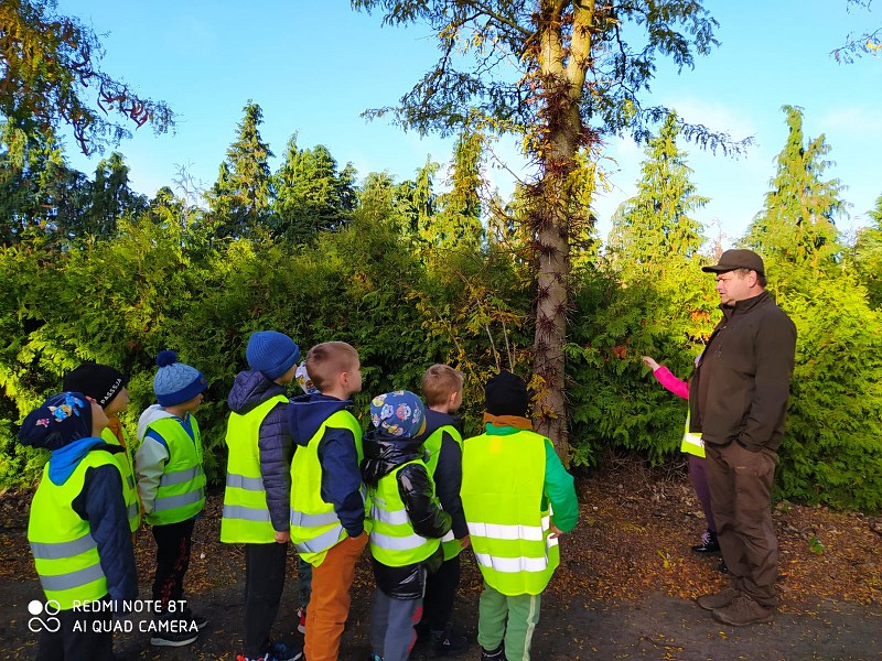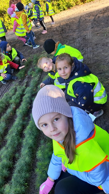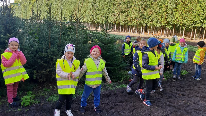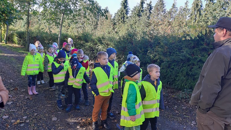 Korzystając z pięknej jesieni, dzieci z klas zerowych wybrały się na wycieczkę do szkółki leśnej. Zanim jednak uczniowie wkroczyli do lasu, panie: Lidka, Ania i Ewelina zadbały, aby dzieci co nieco wiedziały o różnych gatunkach drzew i mieszkańcach lasu. Przez kilka dni mali uczniowie rozpoznawali drzewa rosnące przed budynkiem szkoły, wskazywali grzyby jadalne i trujące, kolorowali sylwetki leśnych zwierząt. Wyposażeni w "leśną wiedzę", 11 października dzieci zagościły w szkółce leśnej. Okazało się, że dzieci pilnie słuchały na zajęciach swoich Pań, ponieważ prawie bezbłędnie nazywały i wskazywały drzewa, które pokazywali im Pan Paweł i Pani Paulina, którzy oprowadzali uczniów po leśnych szlakach. Spacerując wśród drzew, dzieci znalazły mnóstwo grzybów, szyszek, żołędzi, przepięknych kolorowych liści i innych leśnych skarbów - wiele z nich dzieci zabrały do szkoły i udekorowały nimi kąciki przyrodnicze w swoich pracowniach. Po bardzo przyjemnym spacerze z wielką przyjemnością wszyscy skosztowali kiełbasek z ogniska. To była bardzo udana, ciekawa, pachnąca lasem wycieczka.