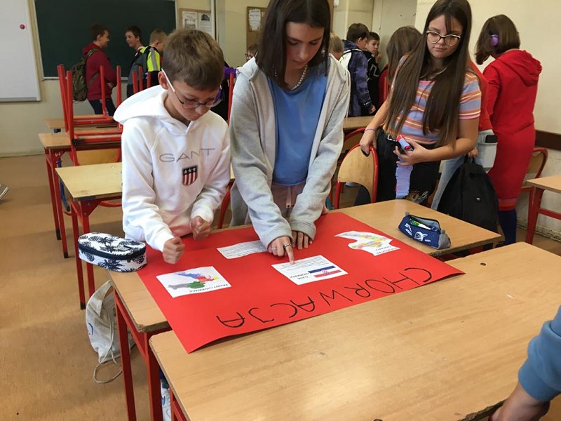 Uczniowie na godzinach z wychowawcą wyszukiwali informacje i ciekawostki na temat wylosowanego przez siebie państwa. Efektem tych poszukiwań były piękne plakaty zachęcające do wakacyjnych podróży. W tym dniu uczniowie przyszli przebrani w barwy narodowe danego państwa. Na lekcjach języka angielskiego i niemieckiego nauczyciele opowiedzieli jak ważna jest znajomość języków obcych w dzisiejszych czasach.