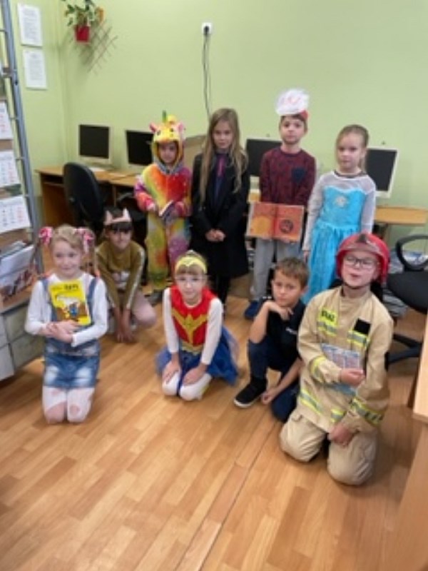 Tego dnia na szkolnych korytarzach zaroiło się od książkowych istot, gdyż wielu czytelników zafascynowanych przygodami literackich bohaterów, chcąc bardziej wczuć się w ich losy, przebrało się za swoją ulubioną postać. I tak można było spotkać m.in. Anię z Zielonego Wzgórza, Kopciuszka w dyniowej kreacji, Hermionę , Harrego i Lunę Lovegood, Spaidermena, Czerwonego Kapturka, Pipi Lansztrung, różne wróżki i królewny, kotki i króliczki, elfy i jednorożce, kilku strażaków, cały poczet olimpijskich bogów oraz wiele innych. Przebrania były naprawdę imponujące. Niektóre sklepowe, inne wykonane własnoręcznie z wykorzystaniem dostępnych w domu materiałów. Jak zwykle przydatne okazały się kartony, stare firanki, babcine kapelusze, itp. Kocyki, zasłonki, wstążki czy folia aluminiowa stawały się pelerynami, balowymi sukniami czy służyły do wykonania koron, mieczy lub innych elementów zbroi. Kolejny raz okazało się, że wyobraźnia naszych uczniów i ich rodziców ma nieograniczone możliwości, a czytane książki tylko ją pobudzają. Osoby najciekawiej przebrane zostały nagrodzone drobnymi upominkami i słodkościami.