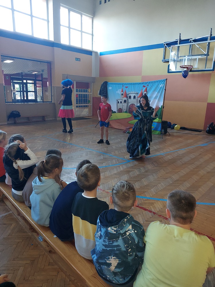 Uczniowie klas III i IV mieli okazję obejrzeć spektakl „Bajki na jednej nodze”. Przedstawienie opierało się na bezpośrednim kontakcie z publicznością. Humorystyczne podejście oraz osadzenie w konwencji kabaretowej poważnych treści spowodowało żywą reakcję dzieci, które chętnie angażowały się w przedstawienie. W spektaklu była mowa