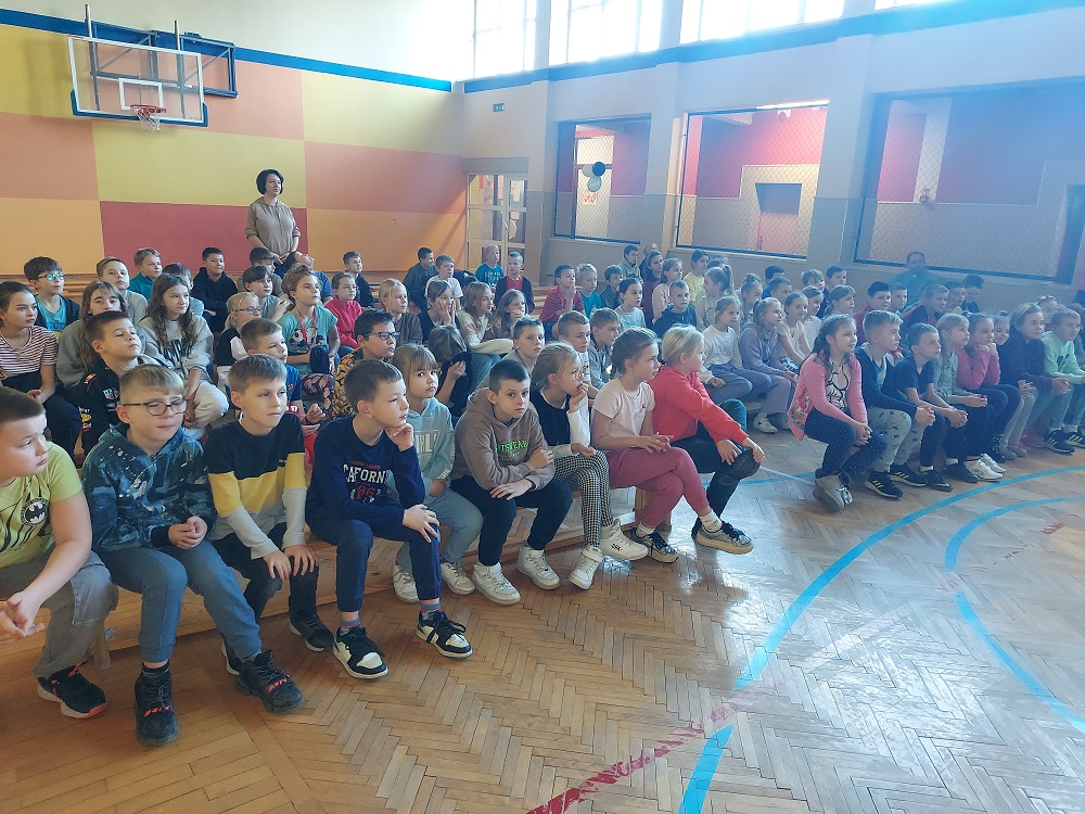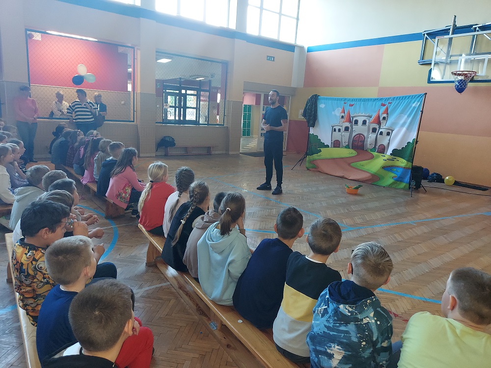 Natomiast uczniowie klas VI i VII obejrzeli przedstawienie pt. „Wielka ucieczka”. Celem spektaklu było uświadomienie młodym osobom, jakie konsekwencje niesie za sobą sięganie po używki i niezdrowe napoje. Aktorzy wskazali, w jaki sposób odmawiać