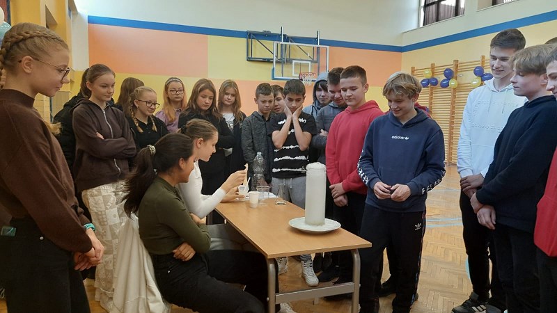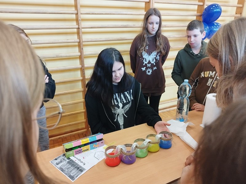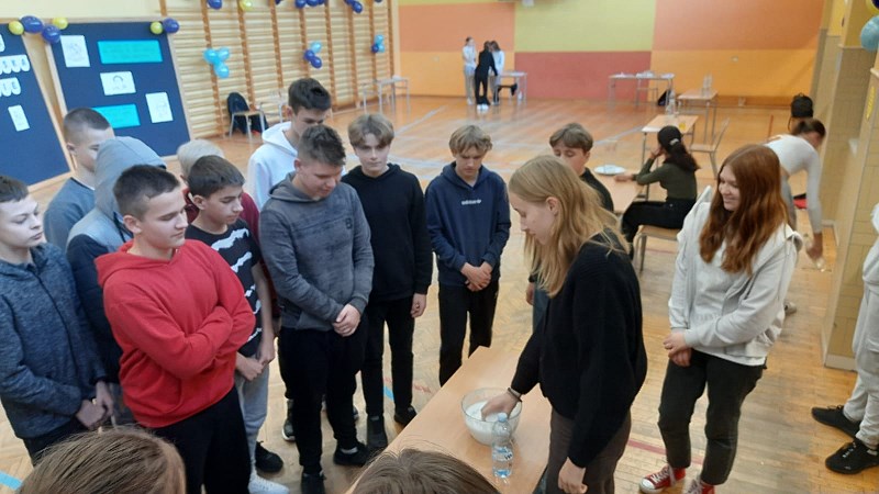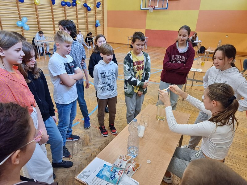 7 listopada nasza szkoła świętowała 155 rocznicę urodzin patrona szkoły - Marii Skłodowskiej-Curie. W tym dniu uczniowie, wspólnie z nauczycielami, zorganizowali "Salę pełną doświadczeń", w której mogli wykonać samodzielnie doświadczenia. W zrealizowaniu przedsięwzięcia pomogła Rada Rodziców, którą ufundowała produkty spożywcze do wykonywania eksperymentów.