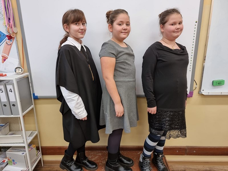 Uczniowie stworzyli także „Żywy układ okresowy”, który został uwieczniony na zdjęciu przez Panią Ewelinę Garczyk. Odbył się również "Konkurs wiedzy o Skłodowskiej", a na szkolnym korytarzu można było spotkać uczniów przebranych za patronkę naszej szkoły.