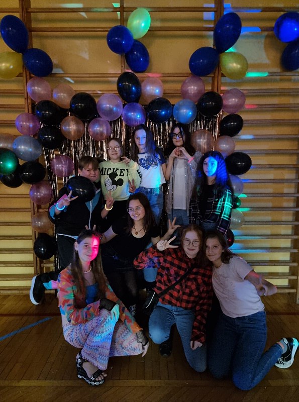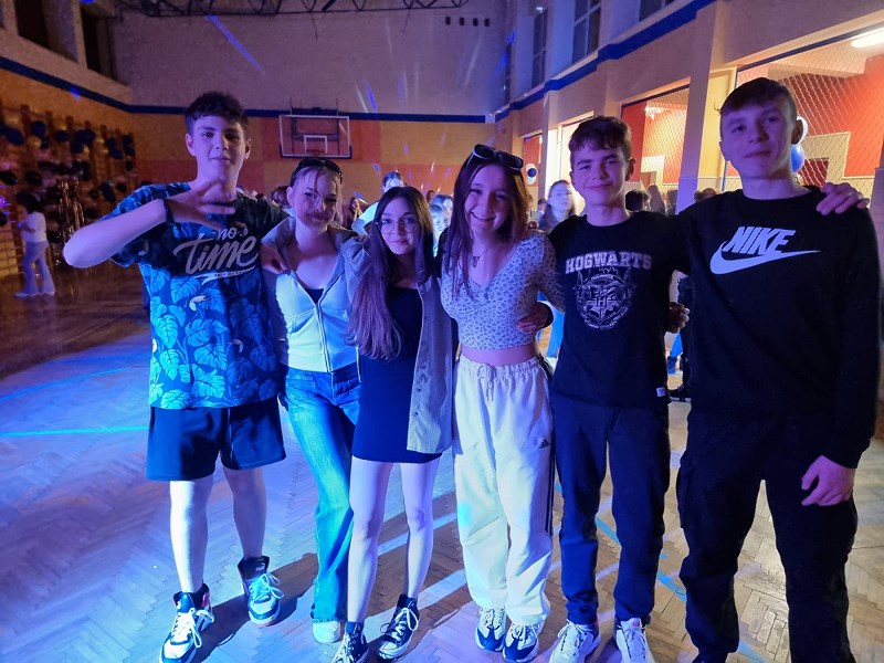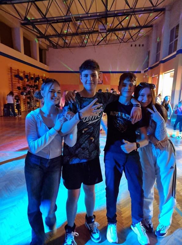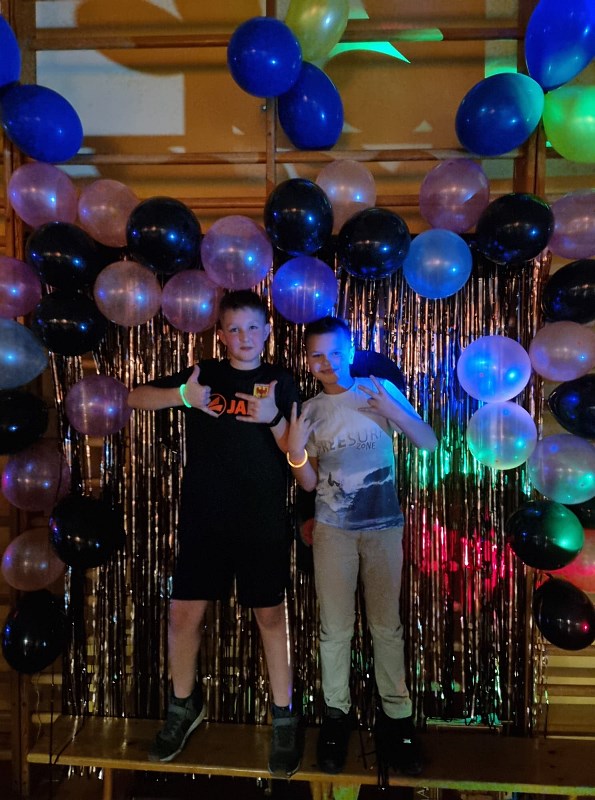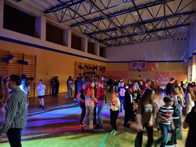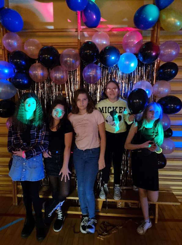 Flanelowe koszule, szerokie swetry, porwane jeansy, trampki – w czasie imprezy andrzejkowej zorganizowanej przez samorząd uczniowski przenieśliśmy się w czasie do lat 90. W zabawie uczestniczyli licznie uczniowie klas 4-8. Wydarzenie okazało się niesamowitym hitem i cieszyło się ogromnym zainteresowaniem. W czasie dyskoteki zatarła się granica wieku i wszyscy bawili się doskonale. Nie zabrakło imprezowych dekoracji przygotowanych przez uczennice klas 8 oraz drobnego poczęstunku.