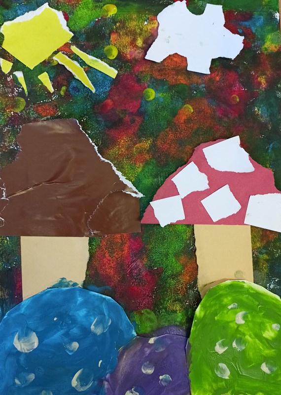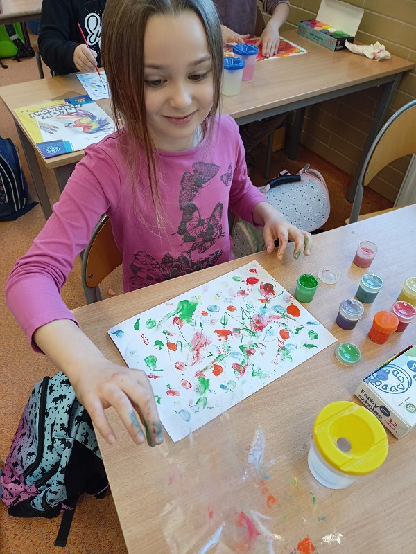 Międzynarodowy projekt edukacyjny "Kreatywne prace plastyczne" - III edycja na rok szkolny 2022/23 - jest to projekt, który w ramach Innowacji Pedagogicznej prowadzonej przez Panią Annę Romańczuk-Zawadzką realizują uczniowie klasy 1a. Projekt ma na celu wyzwolenie w dzieciach twórczej ekspresji, rozwijanie wyobraźni, nieszablonowego podejścia do pracy plastycznej. Każde zadanie wymaga ogromnego nakładu pracy, ponieważ składa się z kilku etapów. W niecodzienny sposób przygotowywane jest tło artystyczne, które jest bazą. Ideą projektu jest wykorzystywanie surowców, które na co dzień wyrzucamy - my je wykorzystujemy powtórnie w duchu - ZERO WASTE. Inspiruje to do rozsądnego korzystania ze wszystkich dóbr tego świata. Bazą w pracach były zużyte ręczniki papierowe, folia aluminiowa, która zostaje po wielu eksperymentach kulinarnych, zużyte przezroczyste koszulki do dokumentów. Wykorzystywane są także surowce naturalne np. liście. Każda praca jest powiązana z aktualną porą roku. Jest to doskonała okazja do rozmów na temat zmieniającej się przyrody oraz występujących zjawiskach atmosferycznych. Polisensoryczność tych prac sprawia, że rozwijane są wszystkie zmysły. Doskonalona jest motoryka mała, precyzja ruchów, koordynacja wzrokowo-ruchowa. Tworząc pracę w tym projekcie, dzieci mają poczucie sprawczości, wiary w siebie, bo choć każda praca jest inna, każda jest twórcza , oryginalna i niecodzienna.